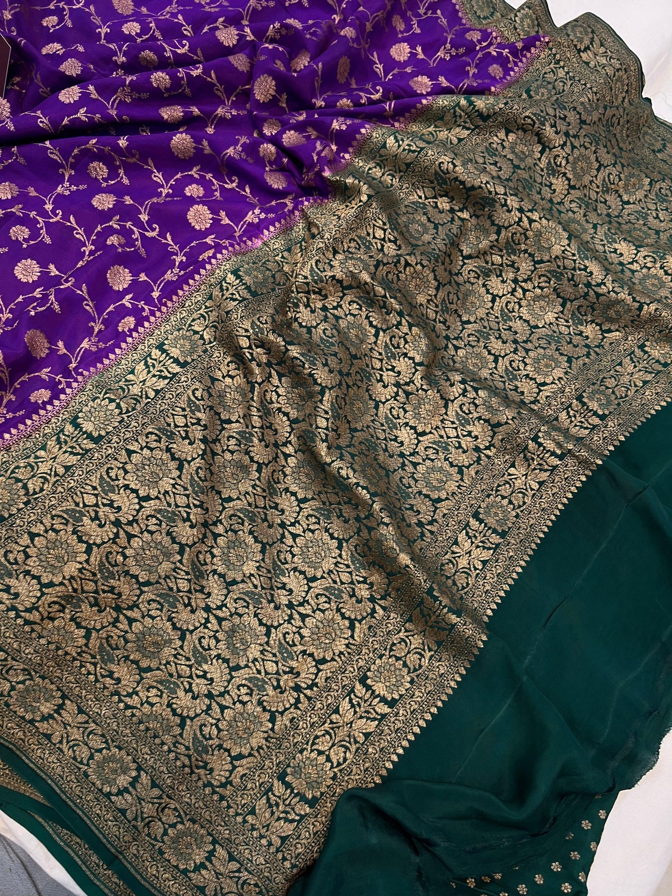 Purple Pure Banarasi Khaddi Crepe Silk Saree - Aura Benaras
