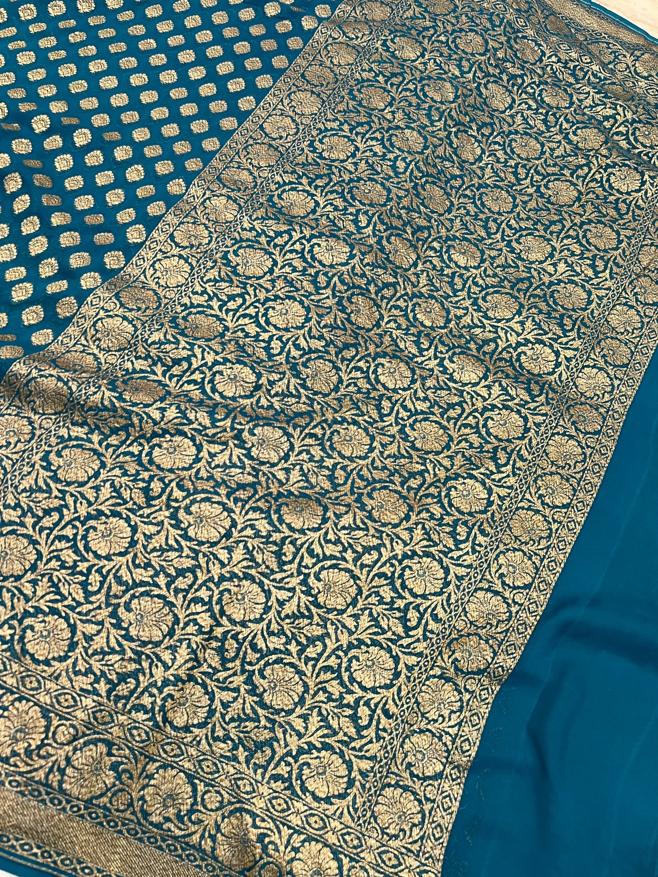 Rama Green Pure Khaddi Georgette Handloom Banarasi Saree