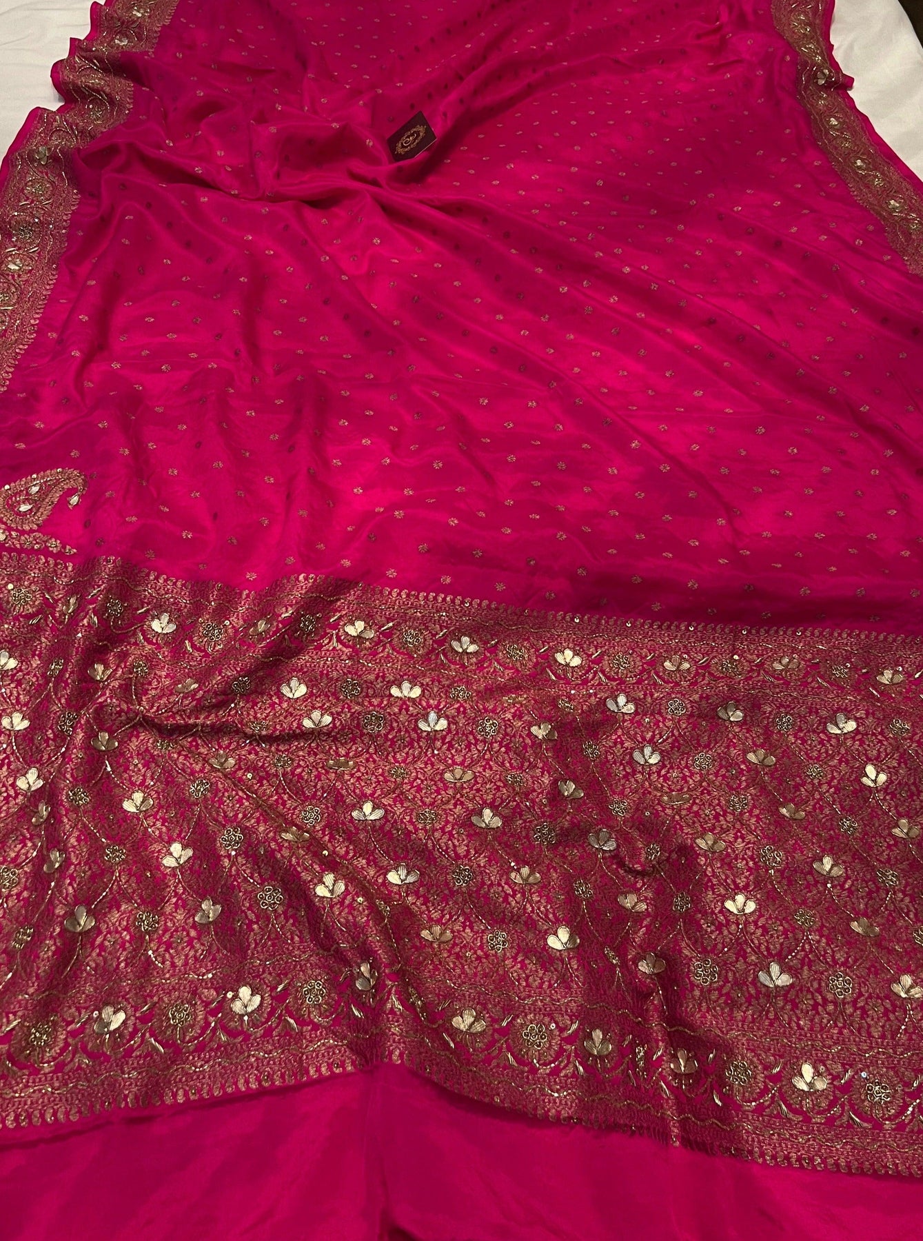 Rani Pink Pure Banarasi Khaddi Crepe Silk Saree