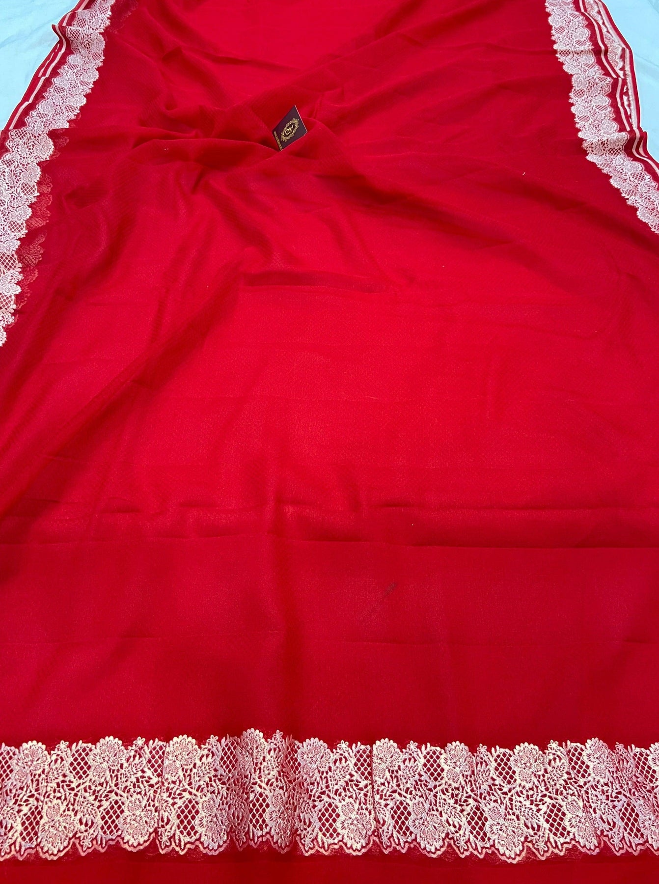 - Color - An enchanting Red with scintillating palla and border.
