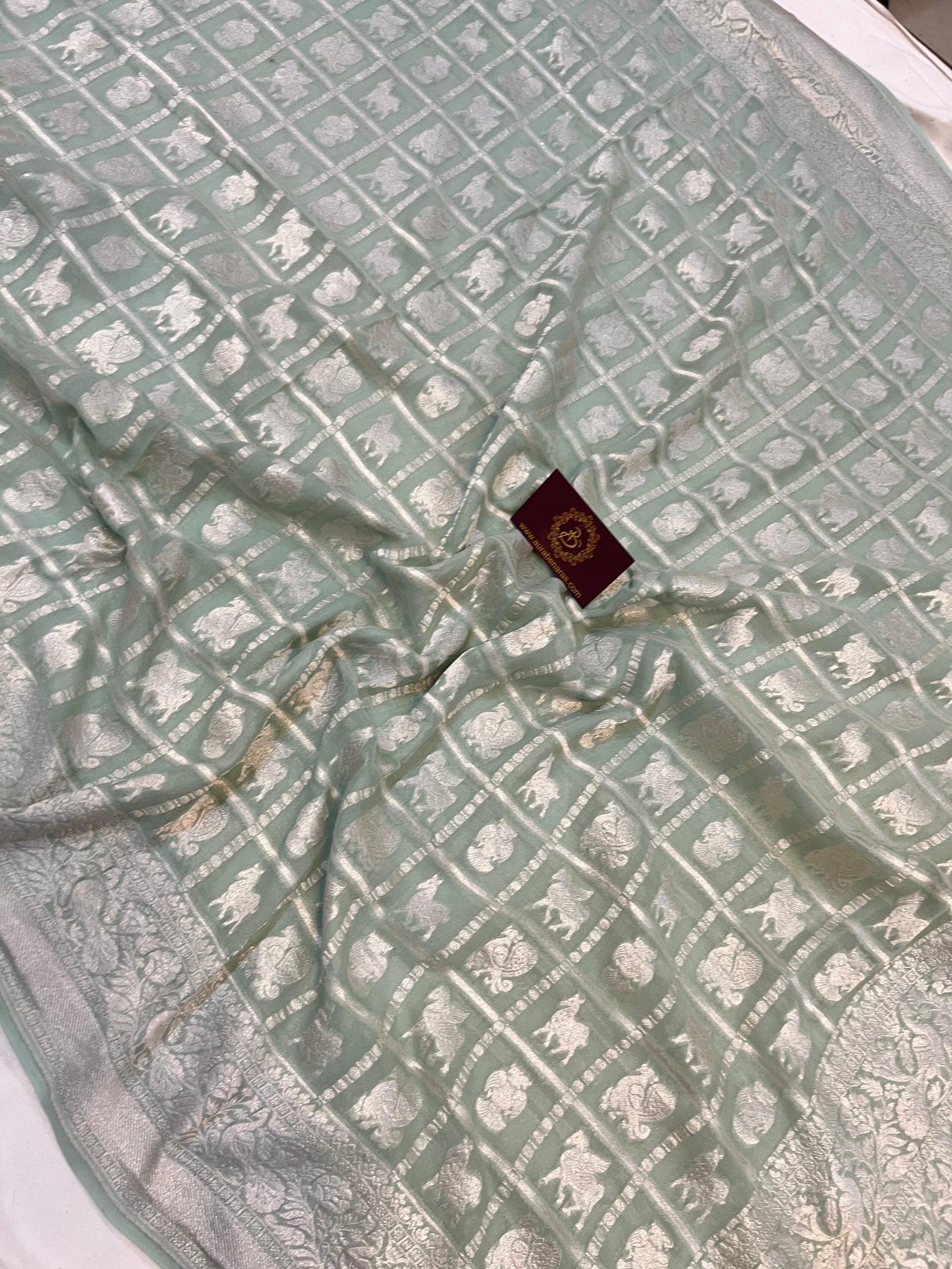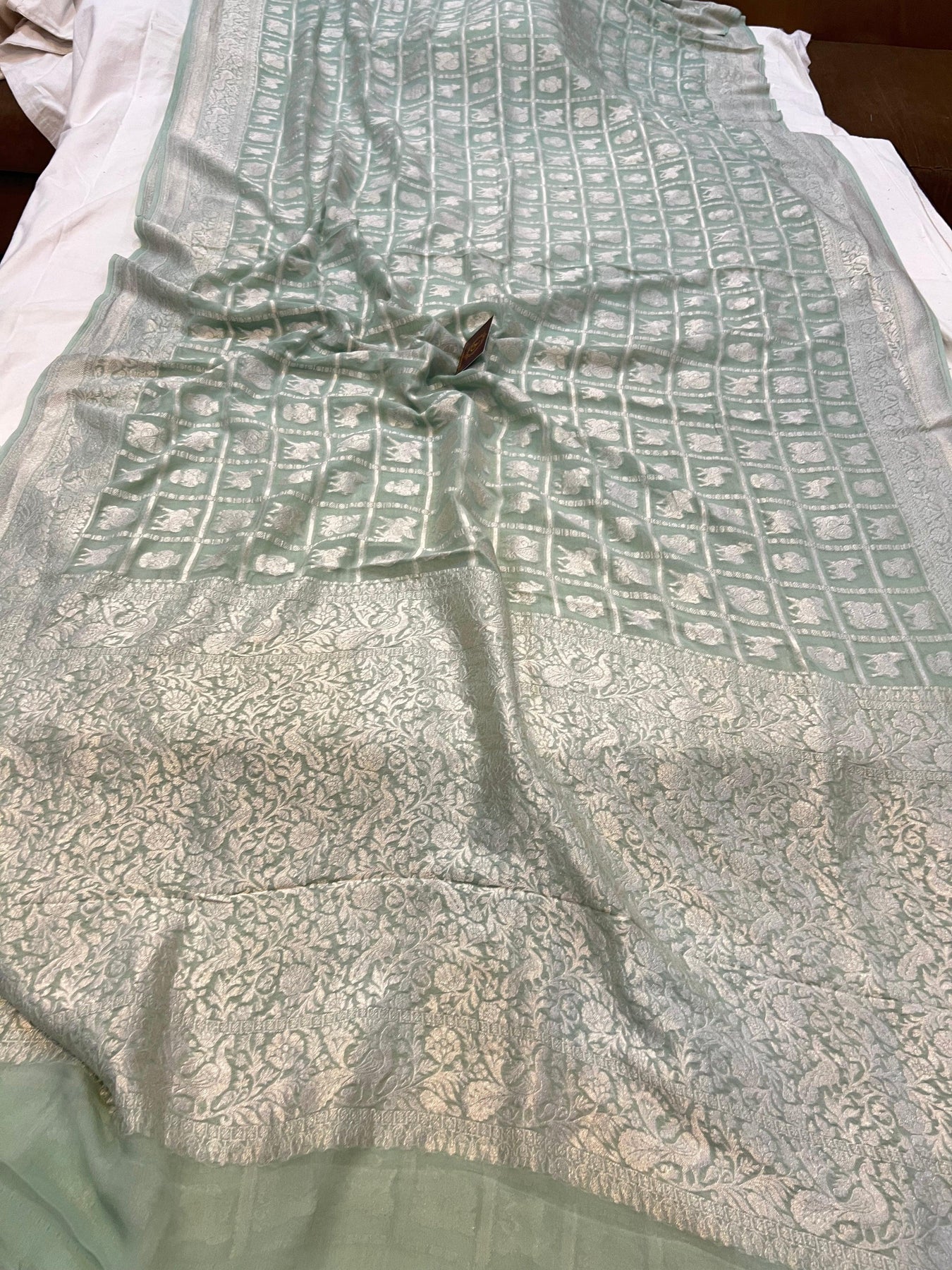 Sage Green Banarasi Handloom Pure Khaddi Georgette Saree