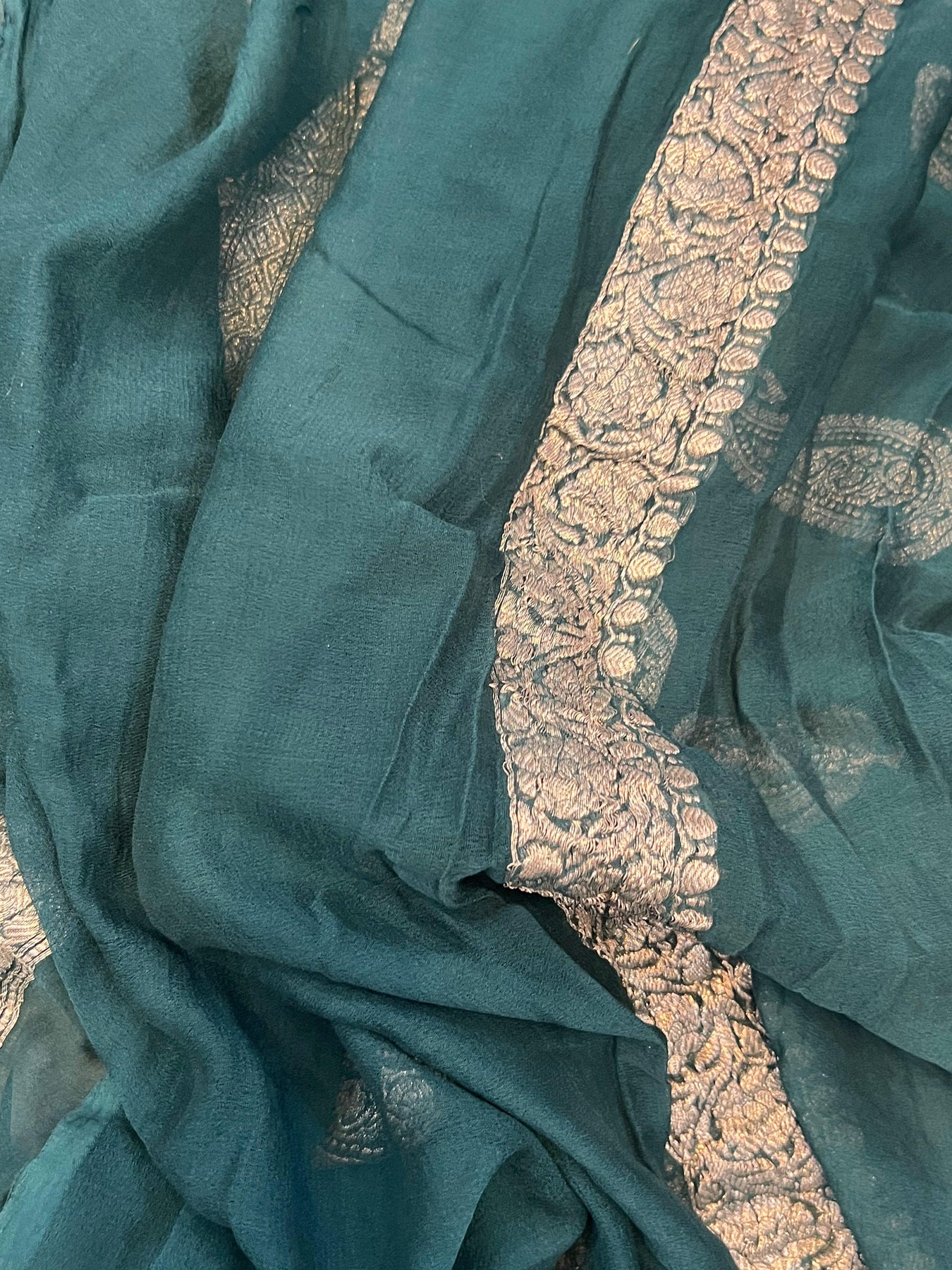 Teal Green Khaddi Chiffon Banarasi Handloom Saree