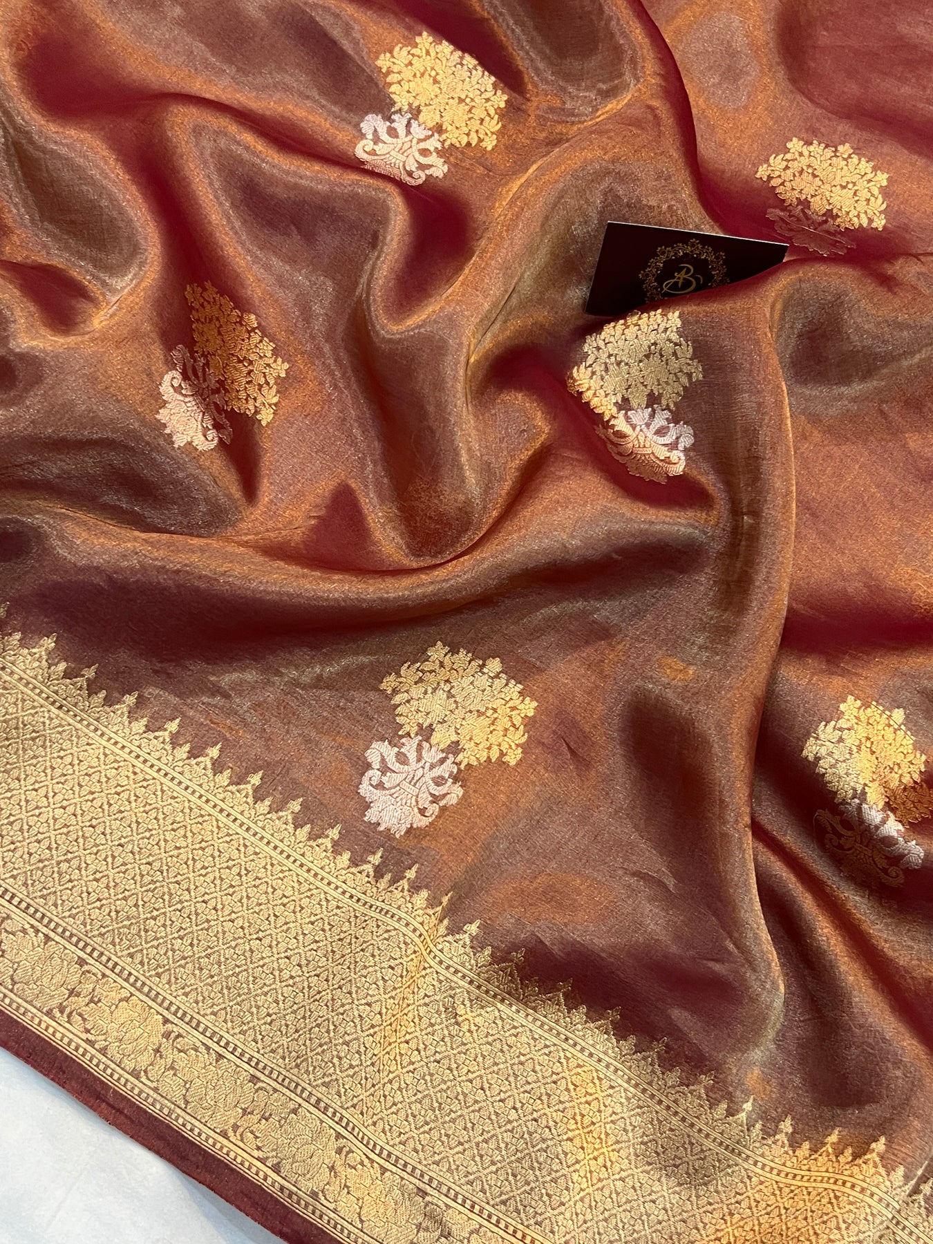 Copper Pure Tissue Silk Handloom Banarasi Saree