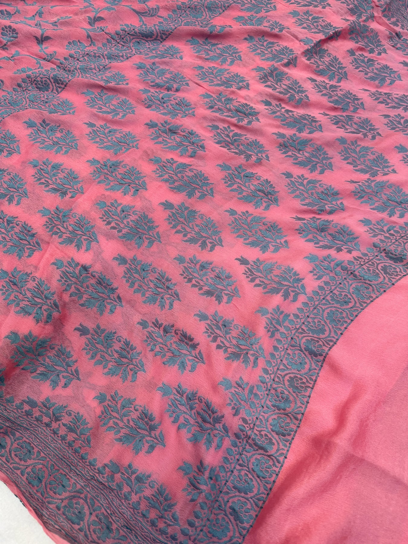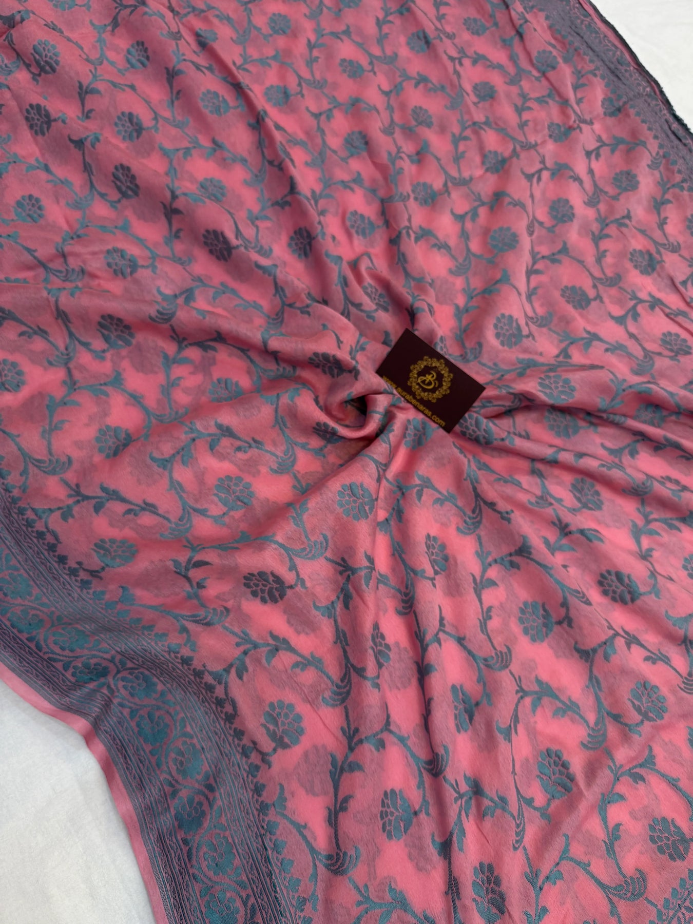 Onion Shade Pure Banarasi Khaddi Chiffon Saree
