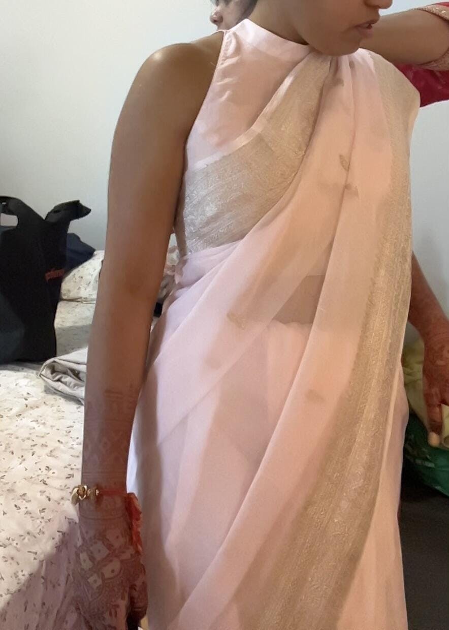 Pale Pink Pure Khaddi Chiffon Handloom Banarasi Saree