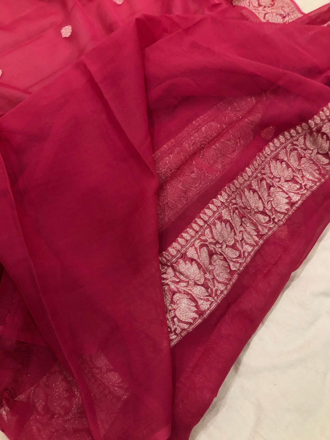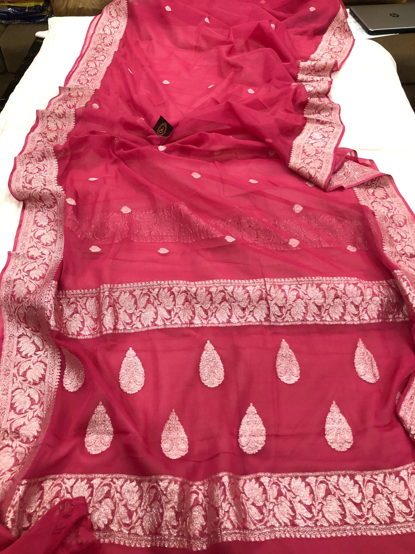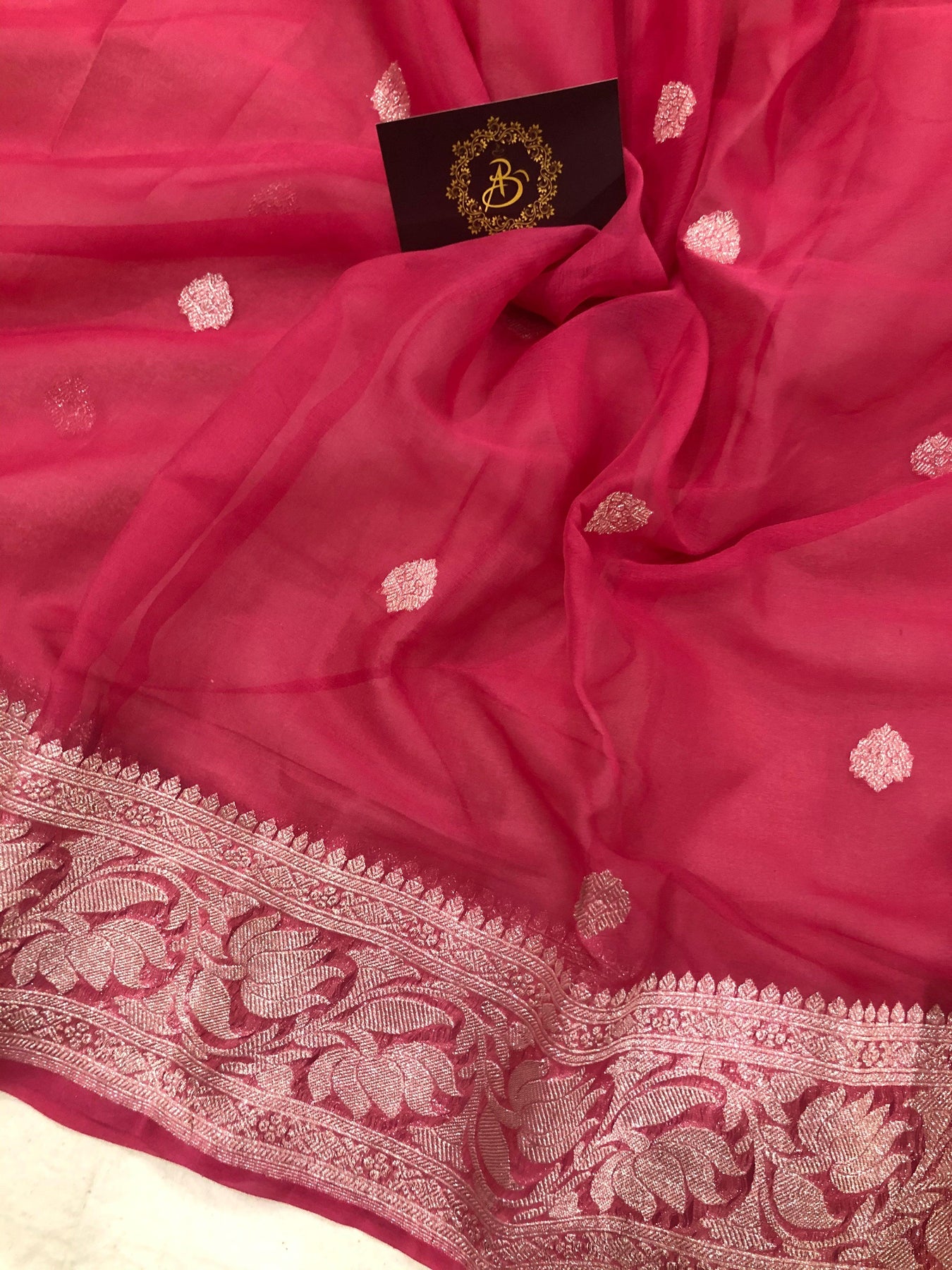 Rose Pink Khaddi Chiffon Banarasi Handloom Saree
