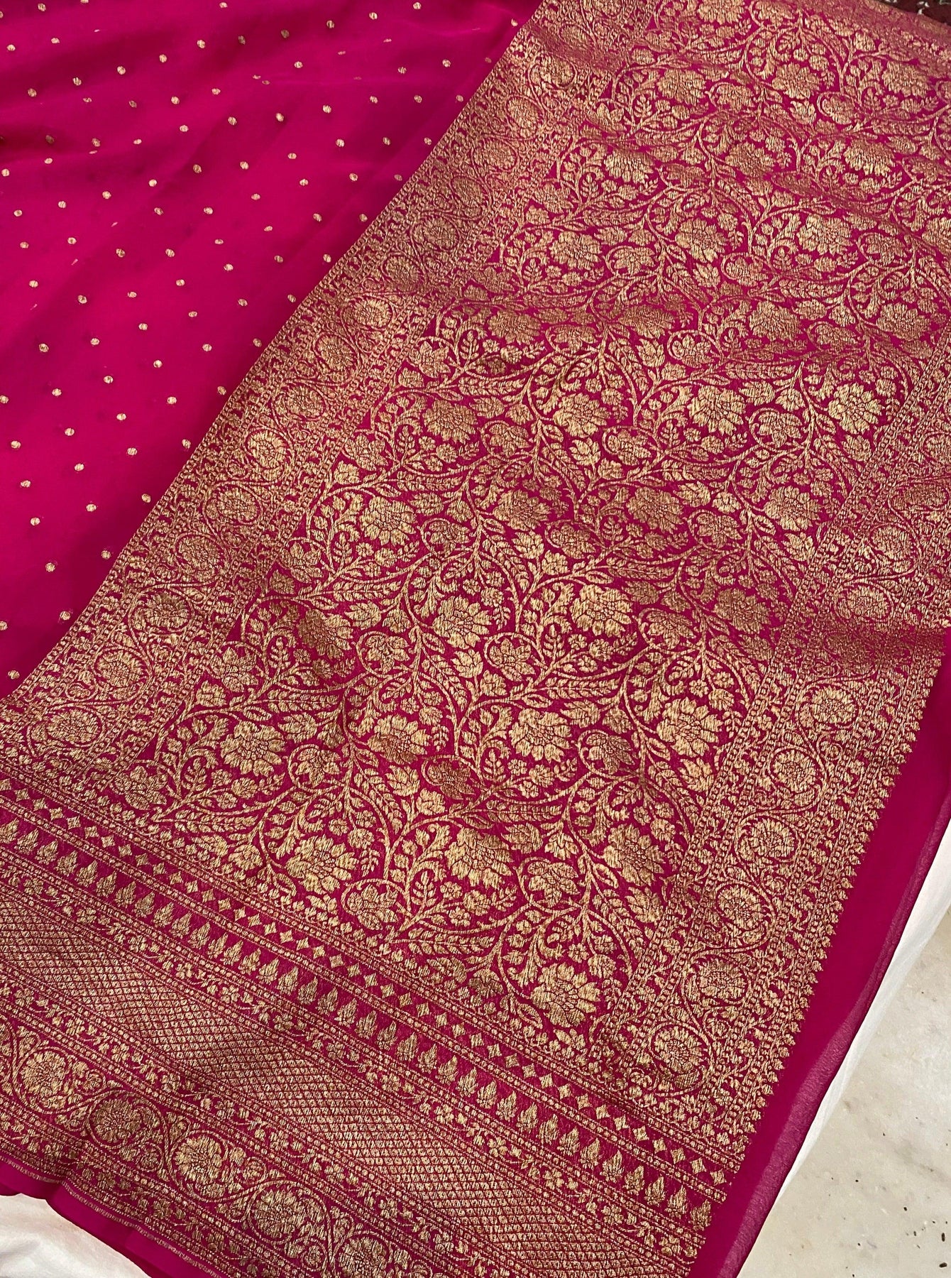 Rani Pink Handloom Pure Khaddi Georgette Silk Saree