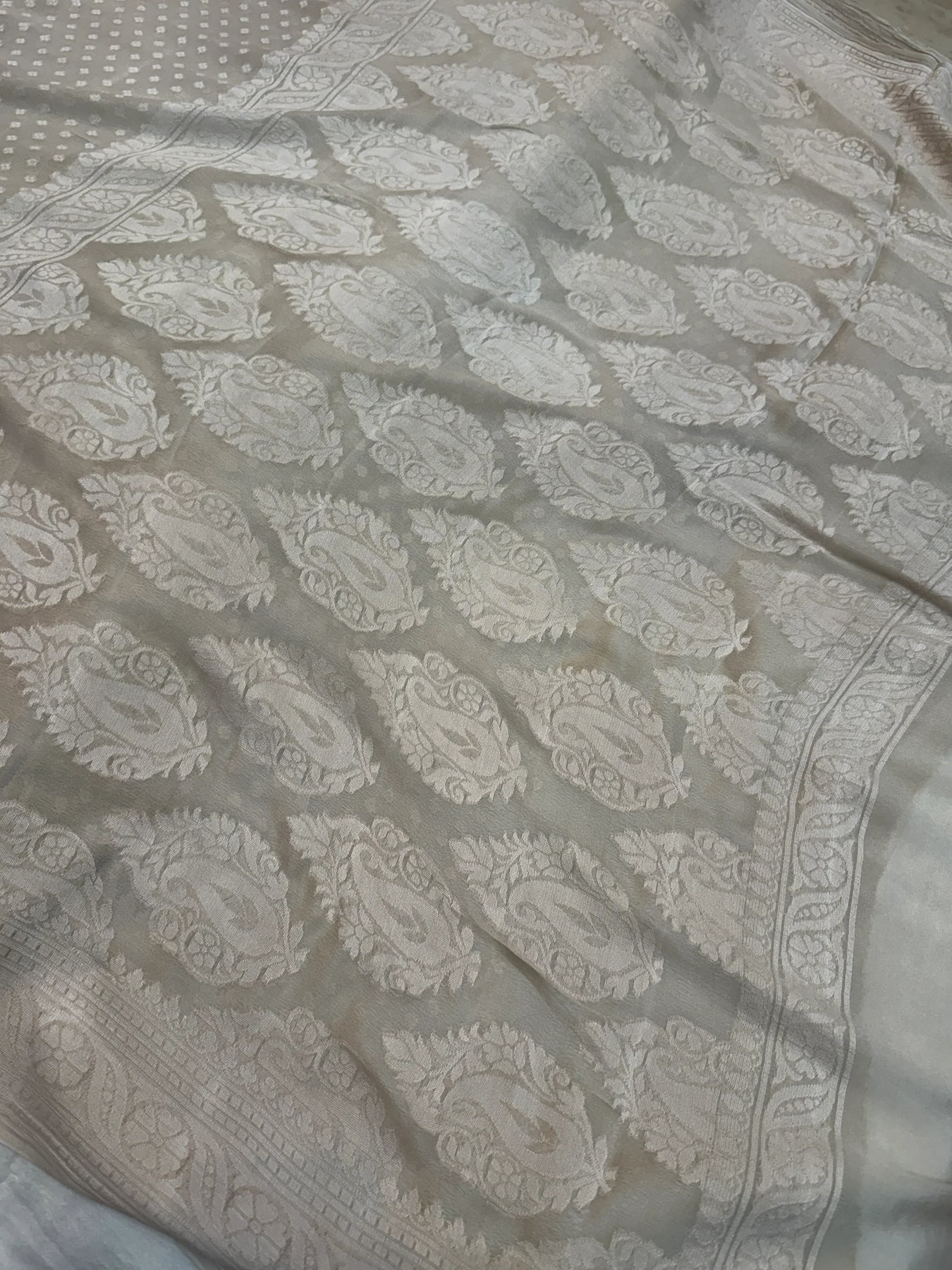 Ash Grey Banarasi Khaddi Chiffon Saree