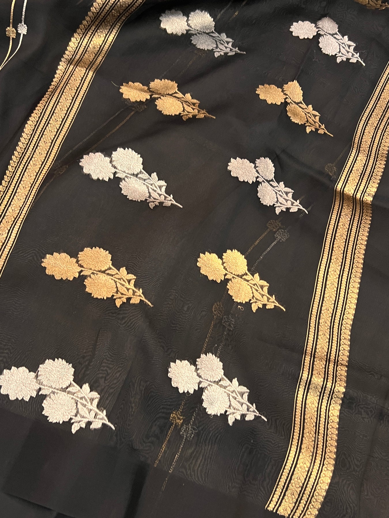 - Color - Black Banarasi saree.