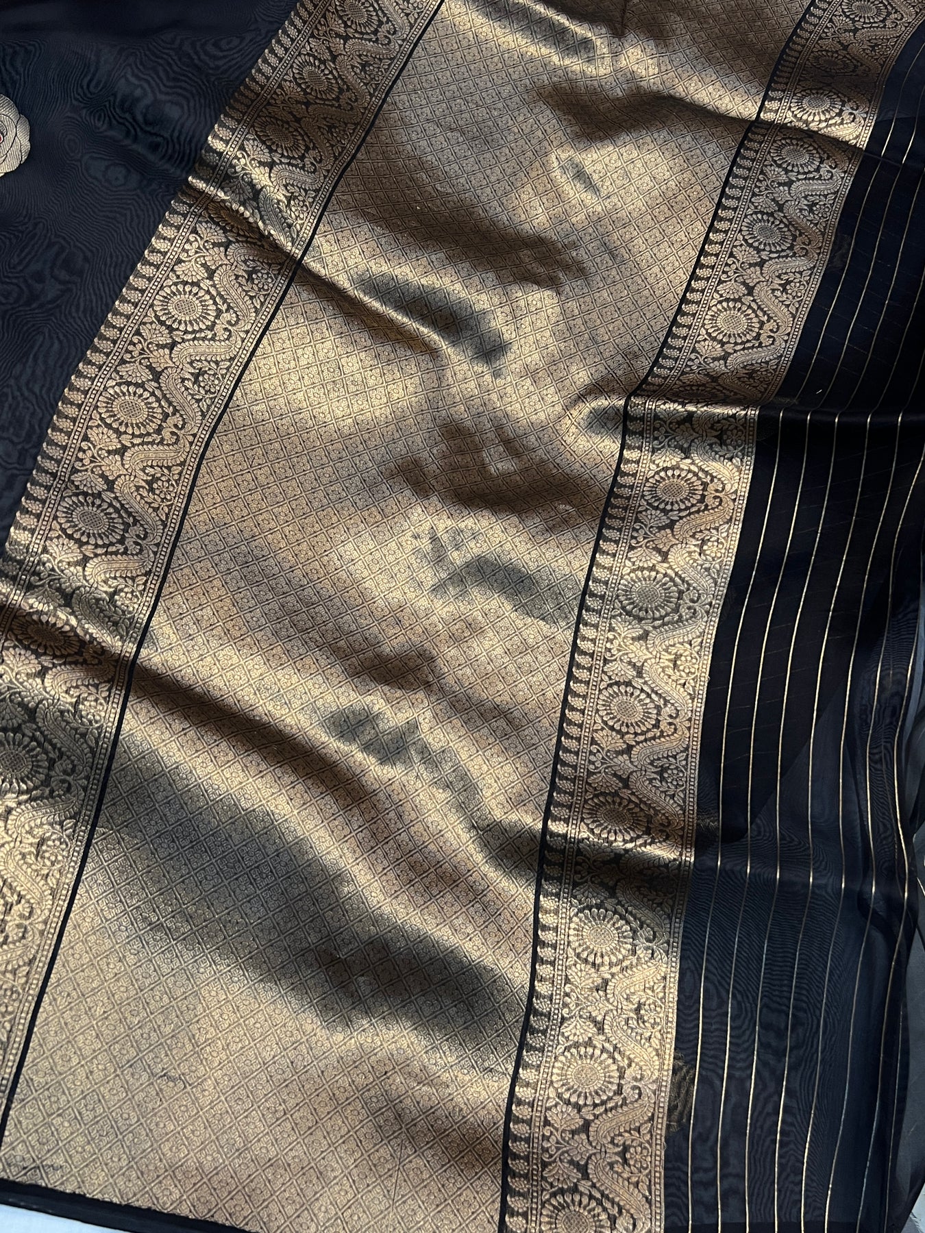 - Color - Black Banarasi saree.