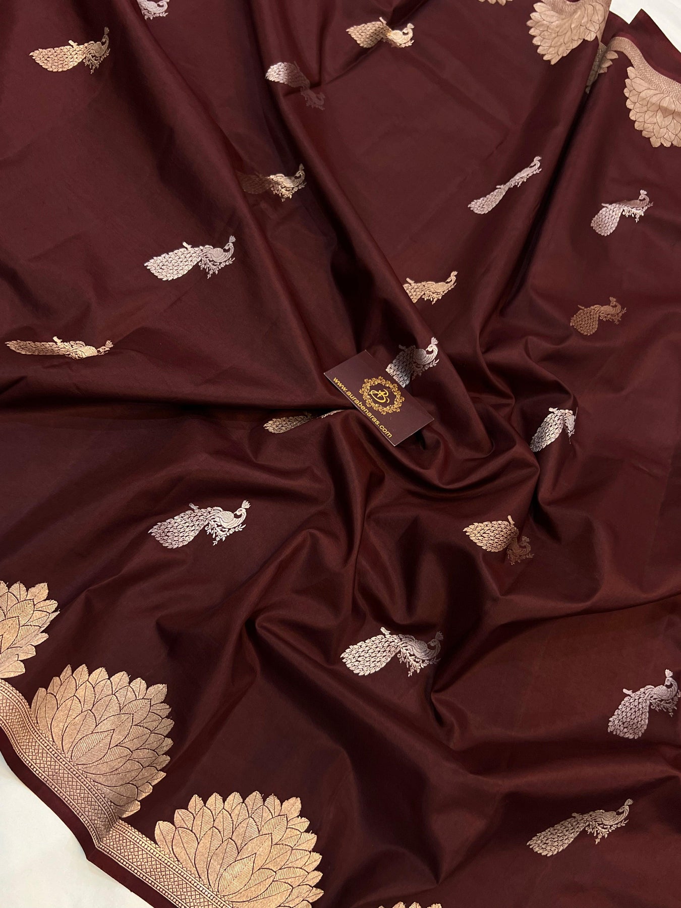 Brown Pure Banarasi Handloom Katan Silk Saree - Aura Benaras