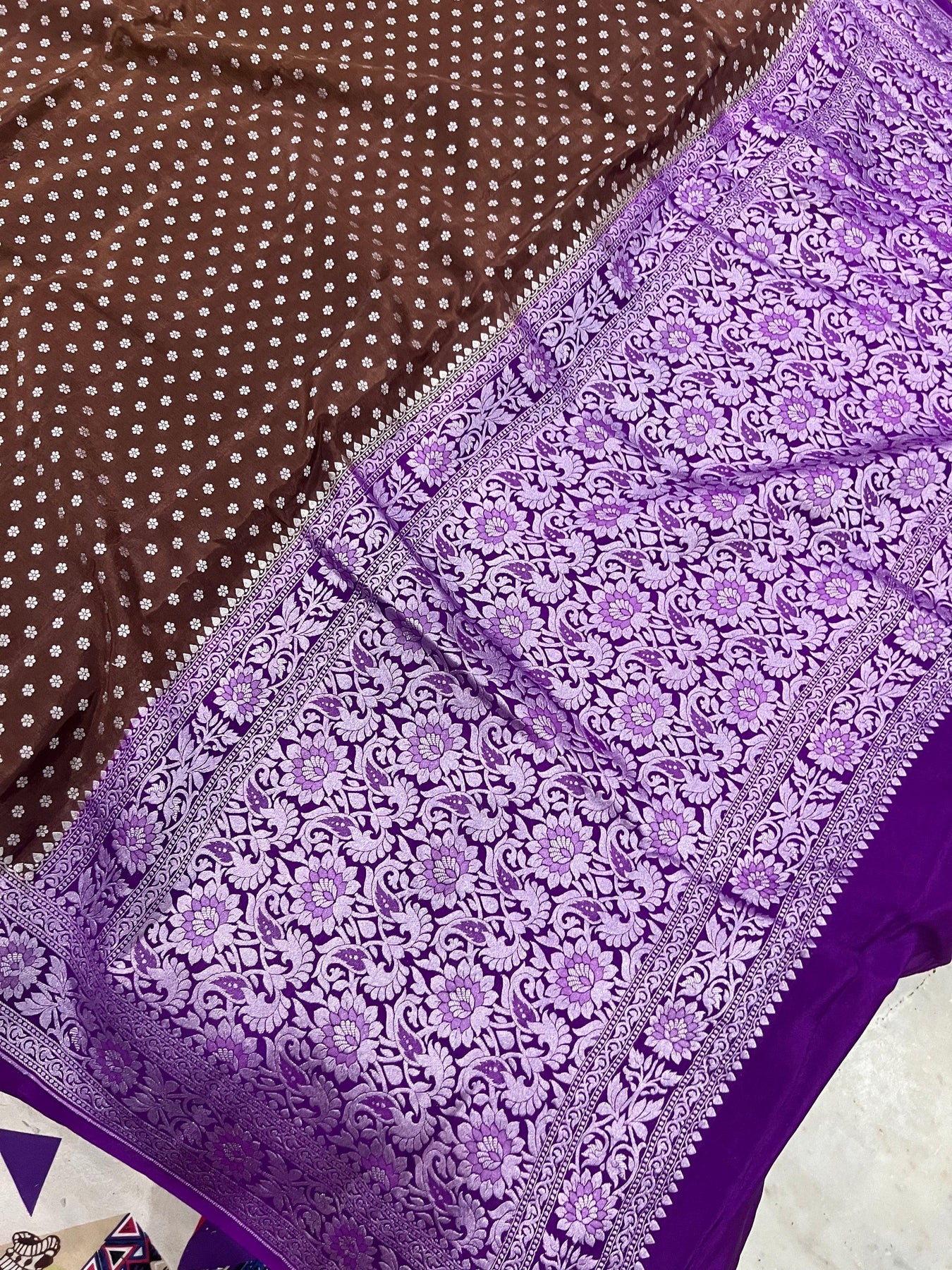 Brown Pure Banarasi Khaddi Crepe Silk Saree