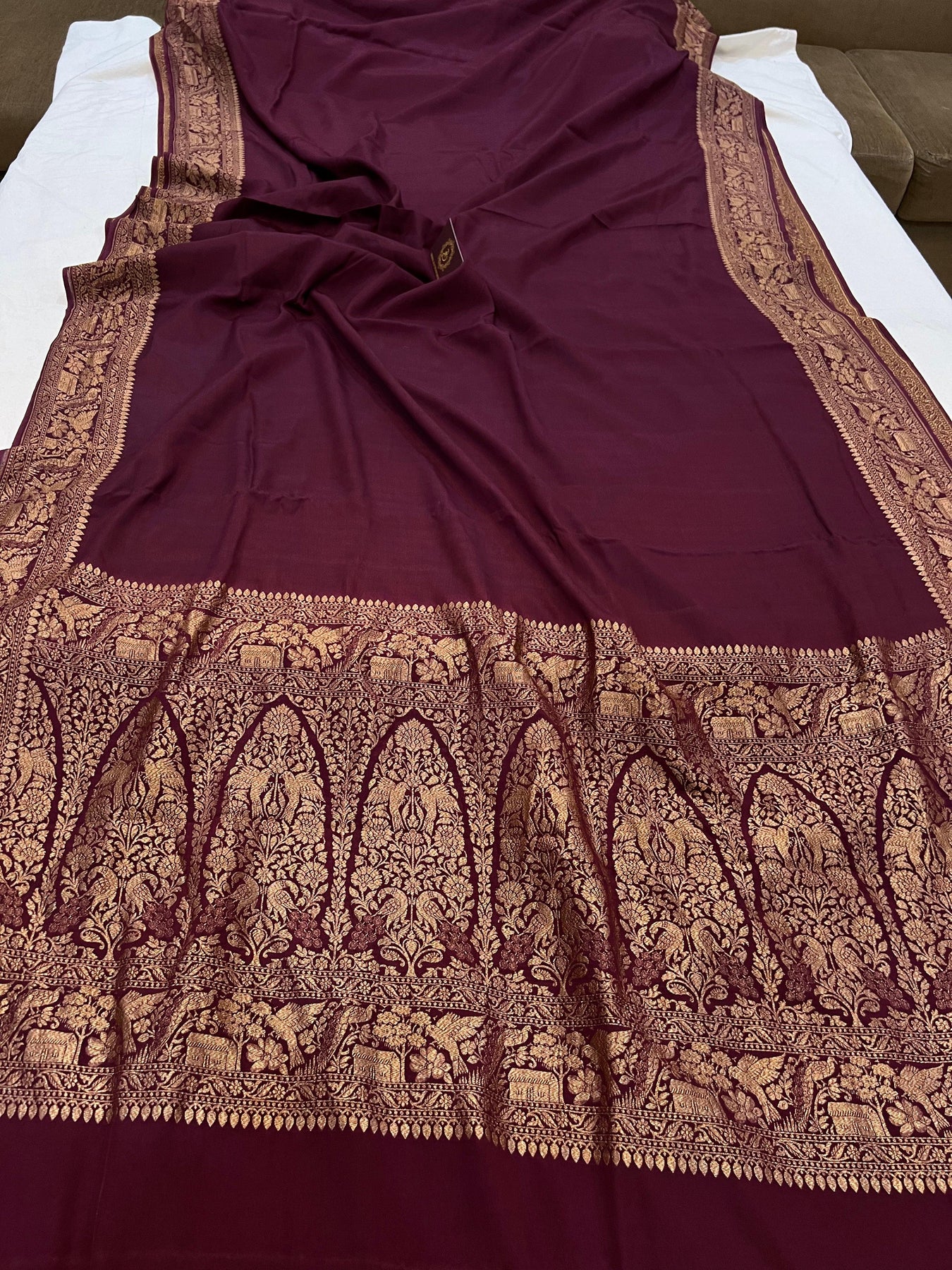 Brown Pure Banarasi Khaddi Crepe Silk Saree