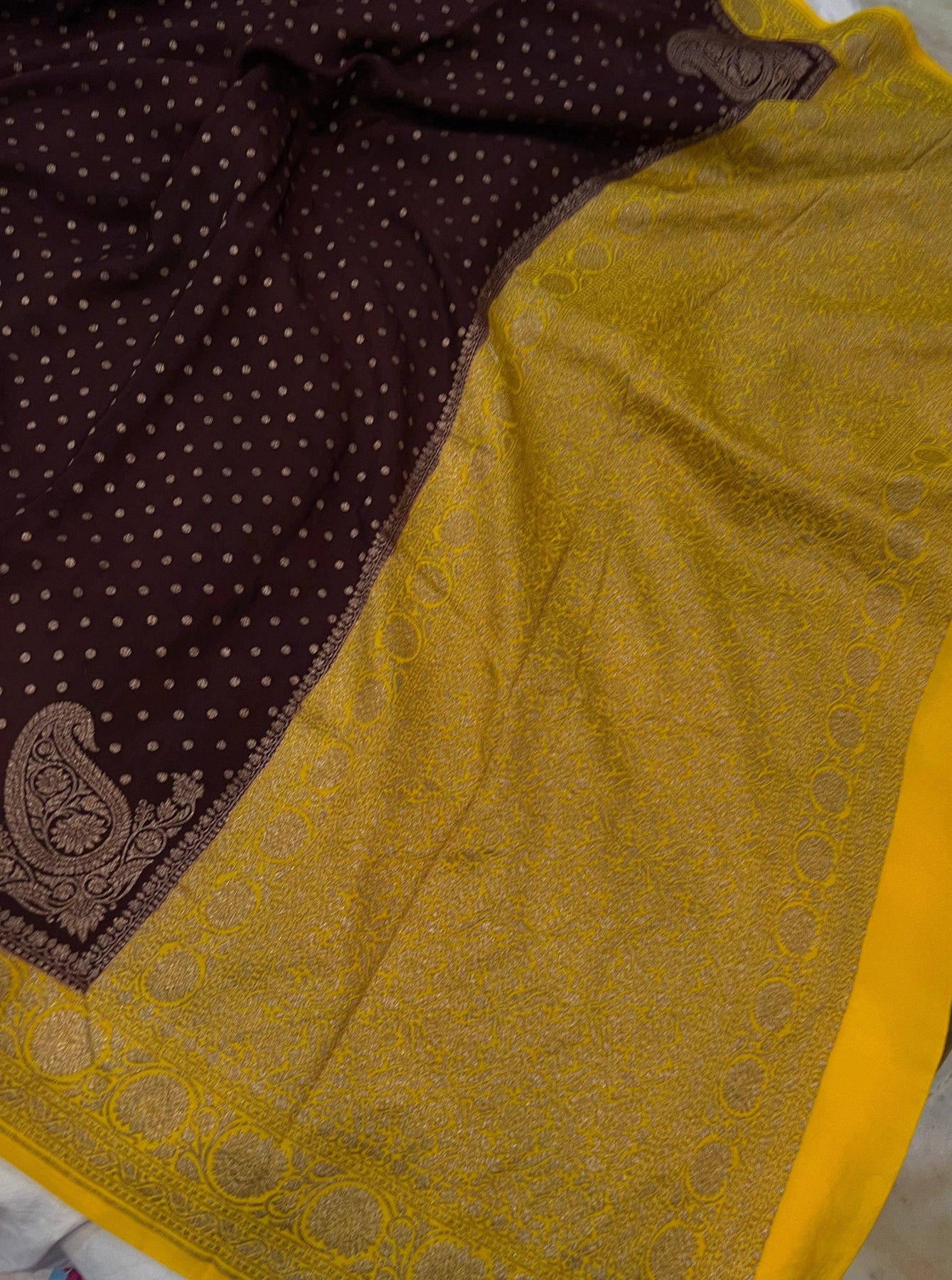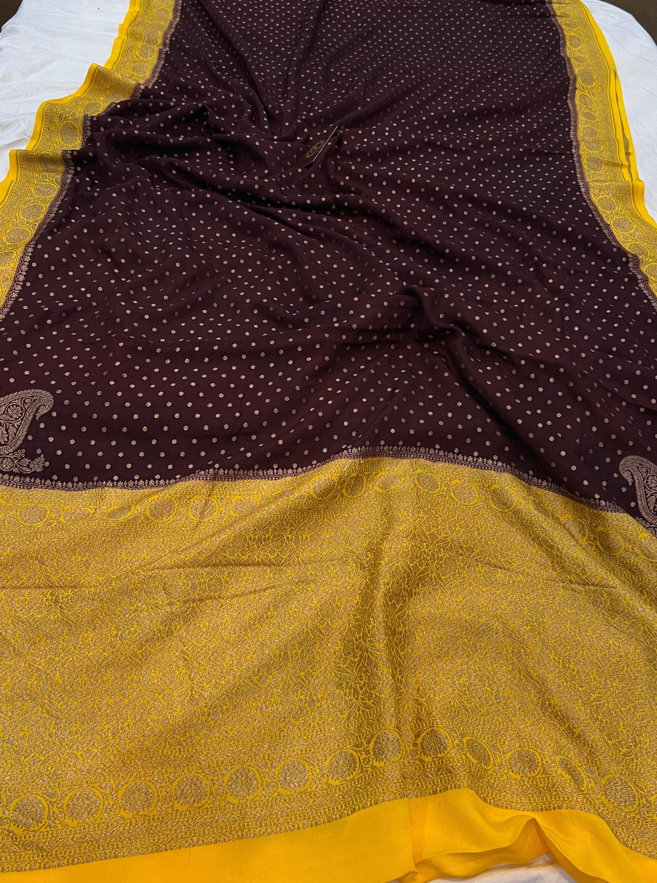 Coffee Brown Pure Banarasi Khaddi Crepe Silk Saree - Aura Benaras