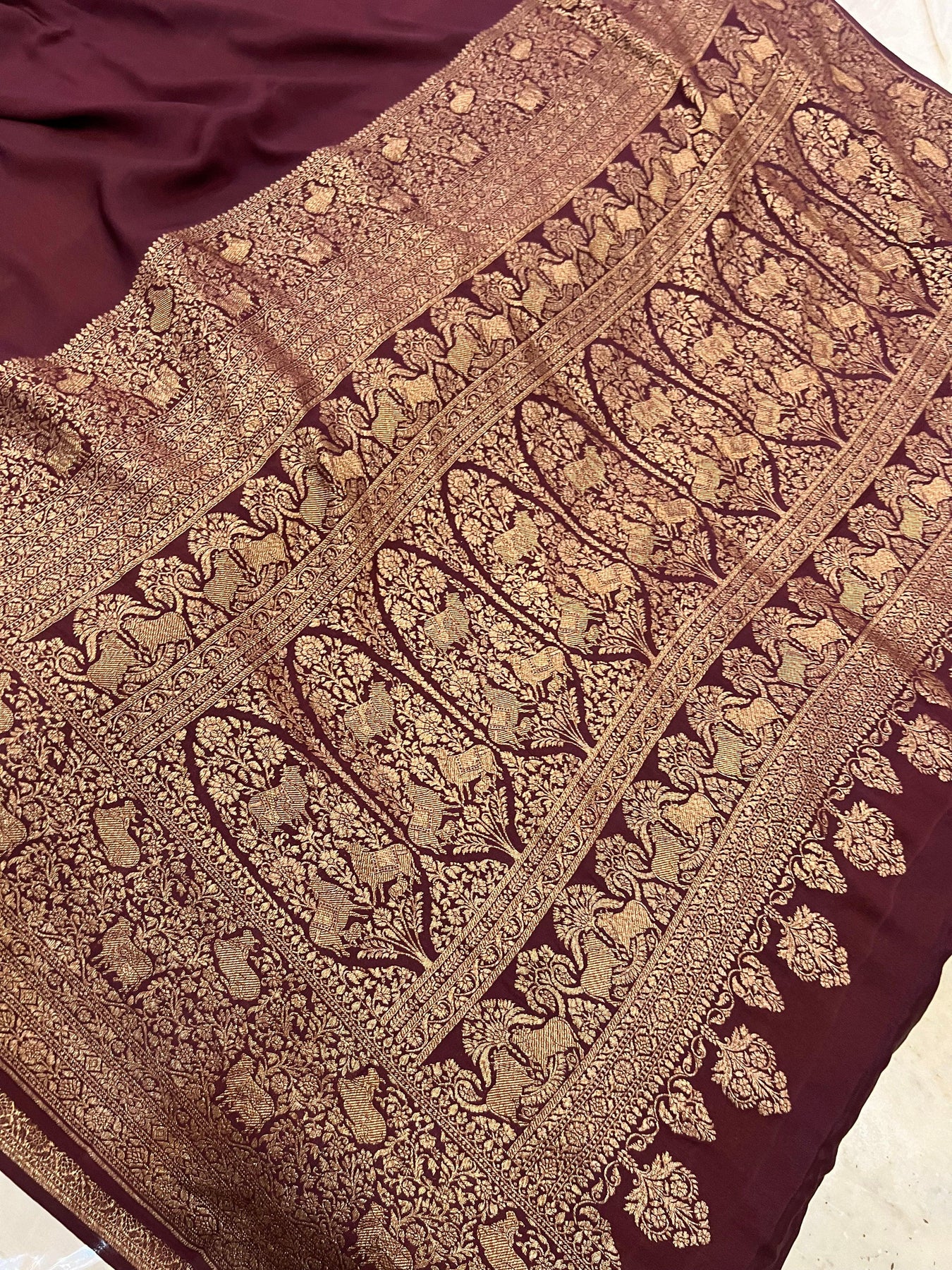 Coffee Brown Pure Banarasi Khaddi Crepe Silk Saree