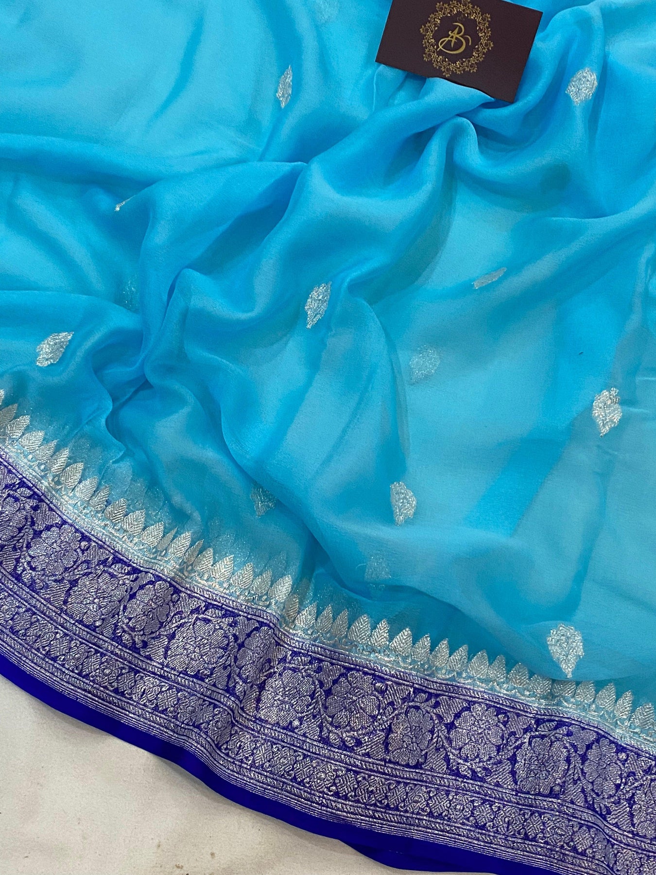 Firozi Khaddi Chiffon Banarasi Handloom Saree