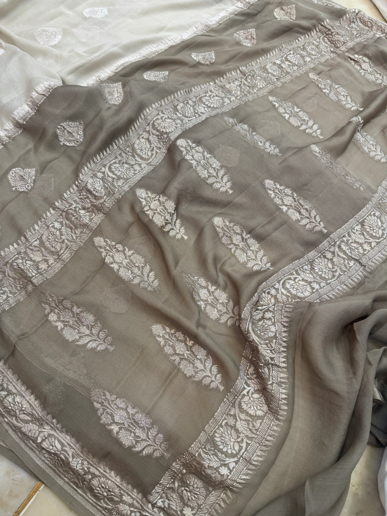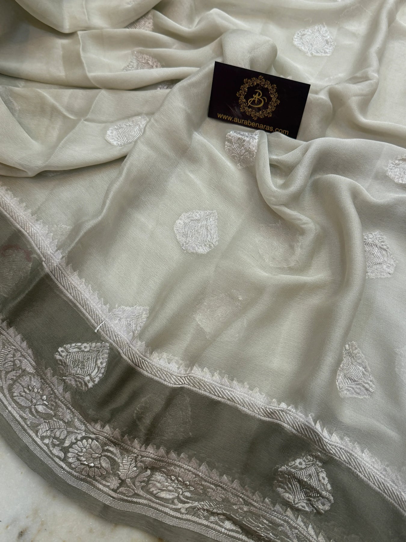 Grey Pure Banarasi Khaddi Chiffon Saree