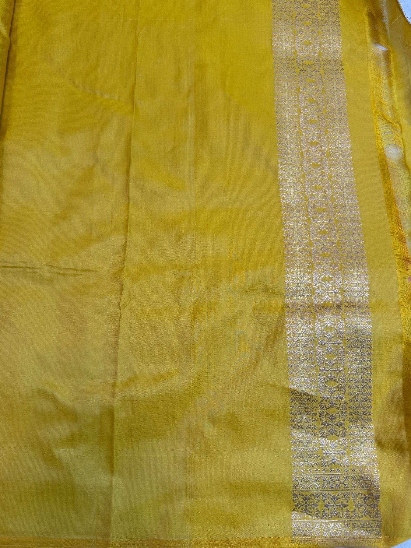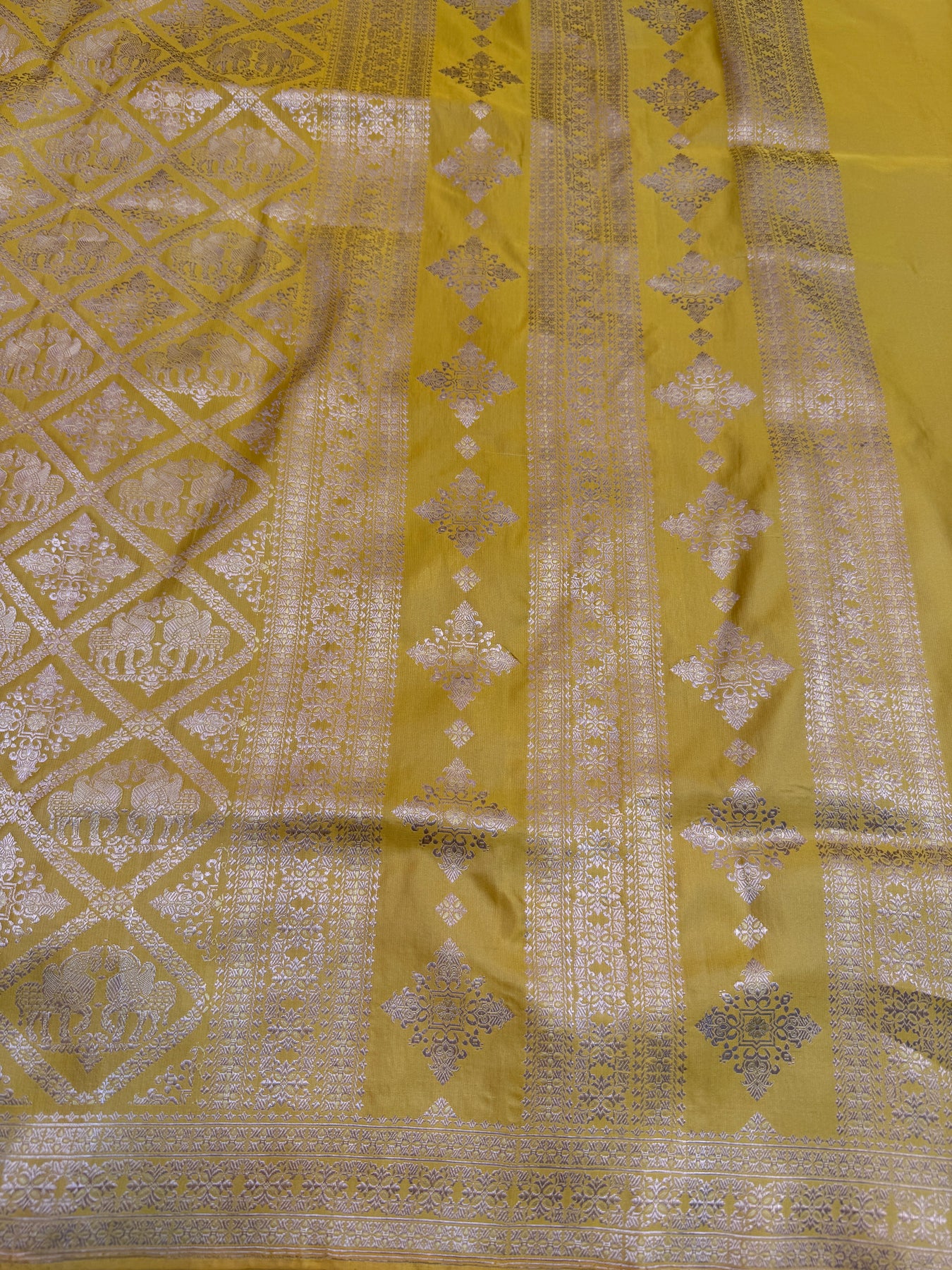 Lemon Yellow Pure Banarasi Handloom Katan Satin Silk Saree