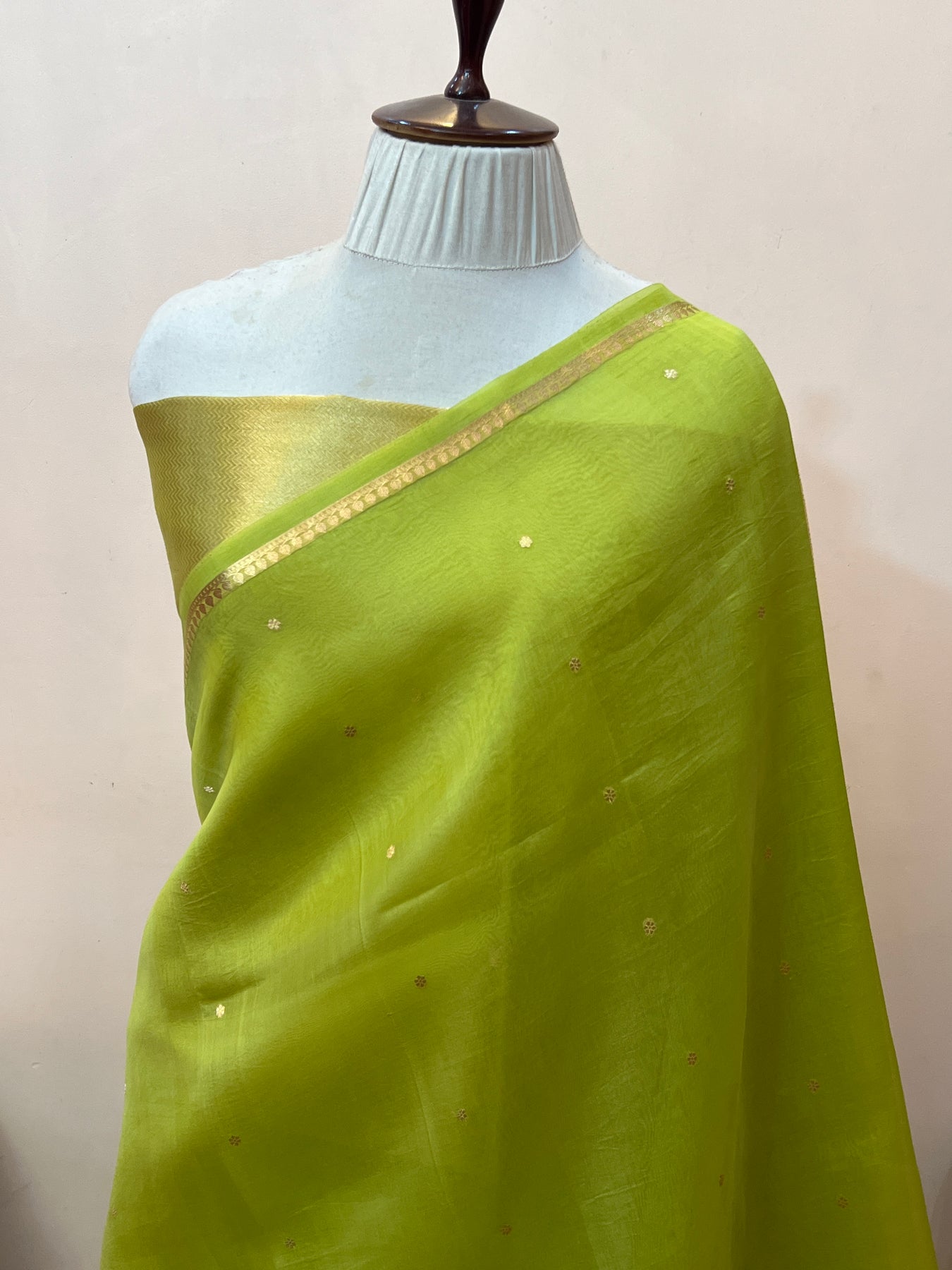 LIght Green Pure Kora Silk Handloom Banarasi Saree