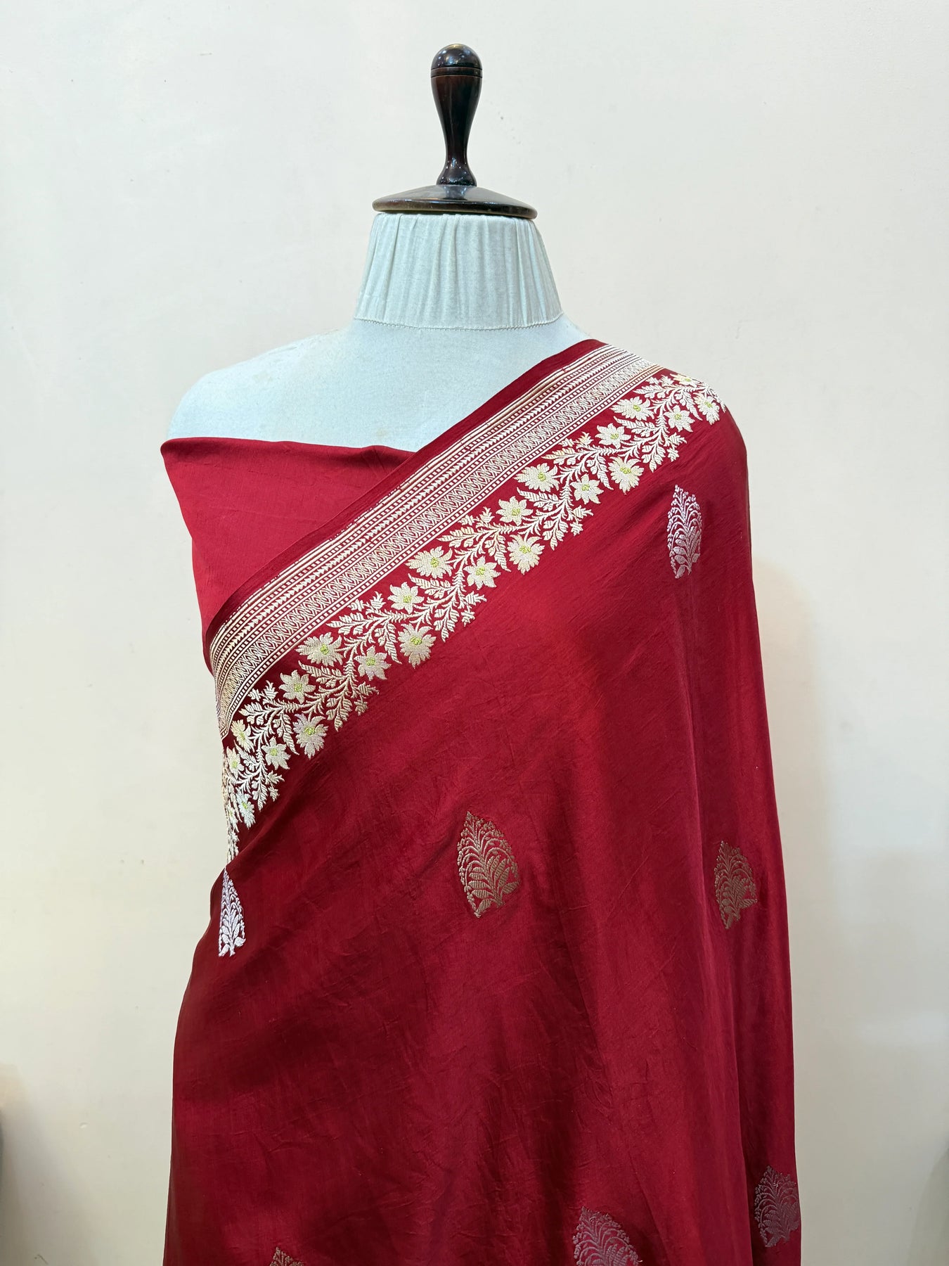 Maroon Pure Mashru Silk Handloom Banarasi Saree