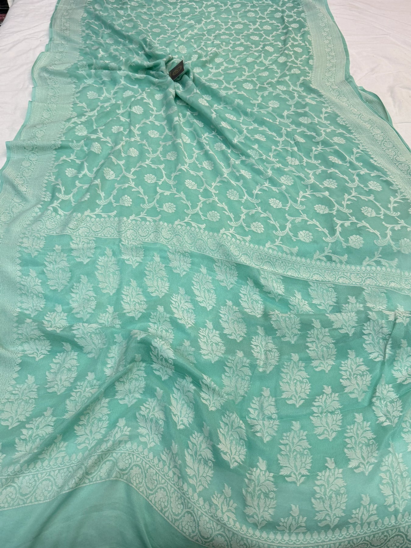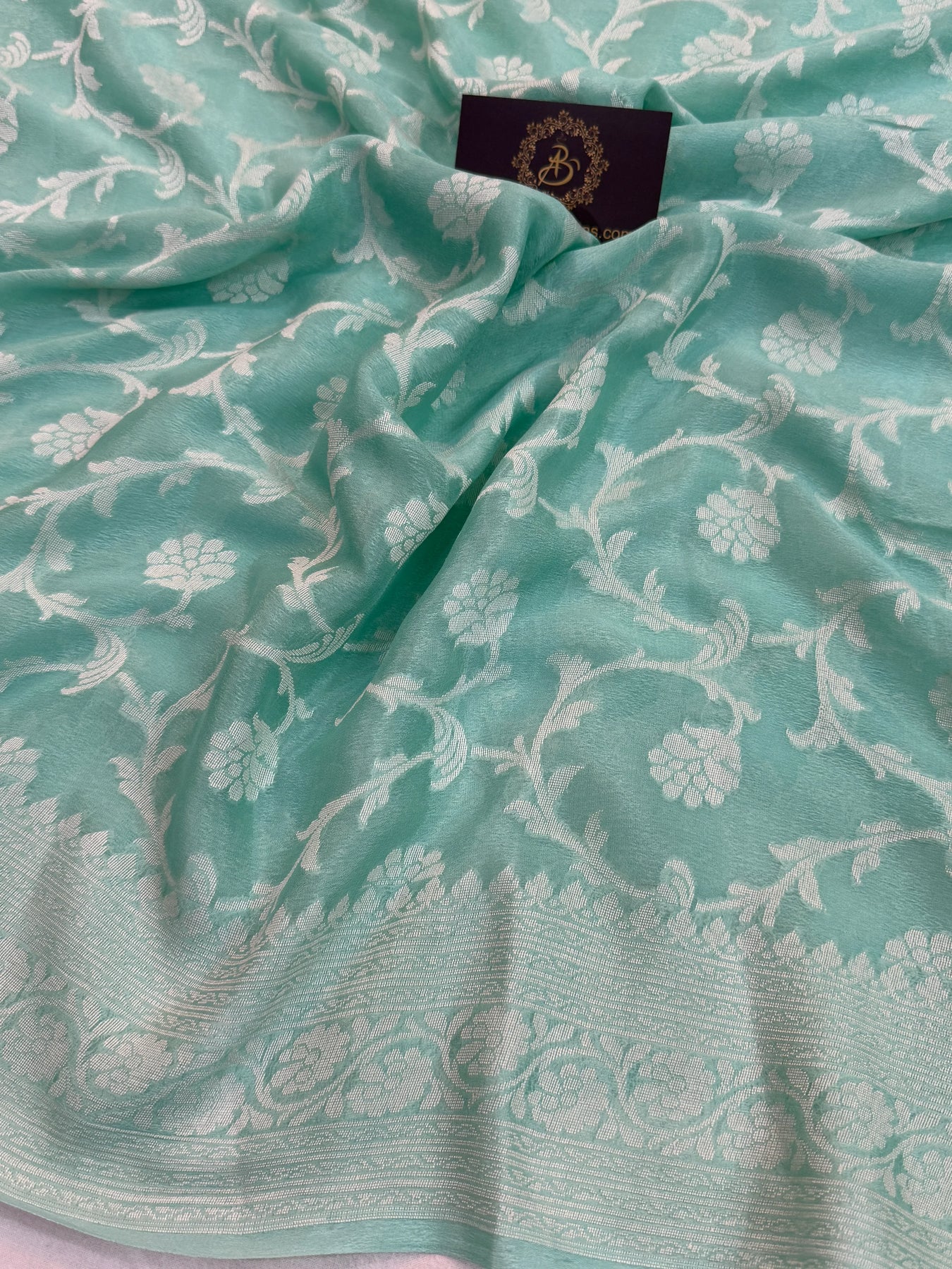 Mint Blue Pure Banarasi Khaddi Chiffon Saree