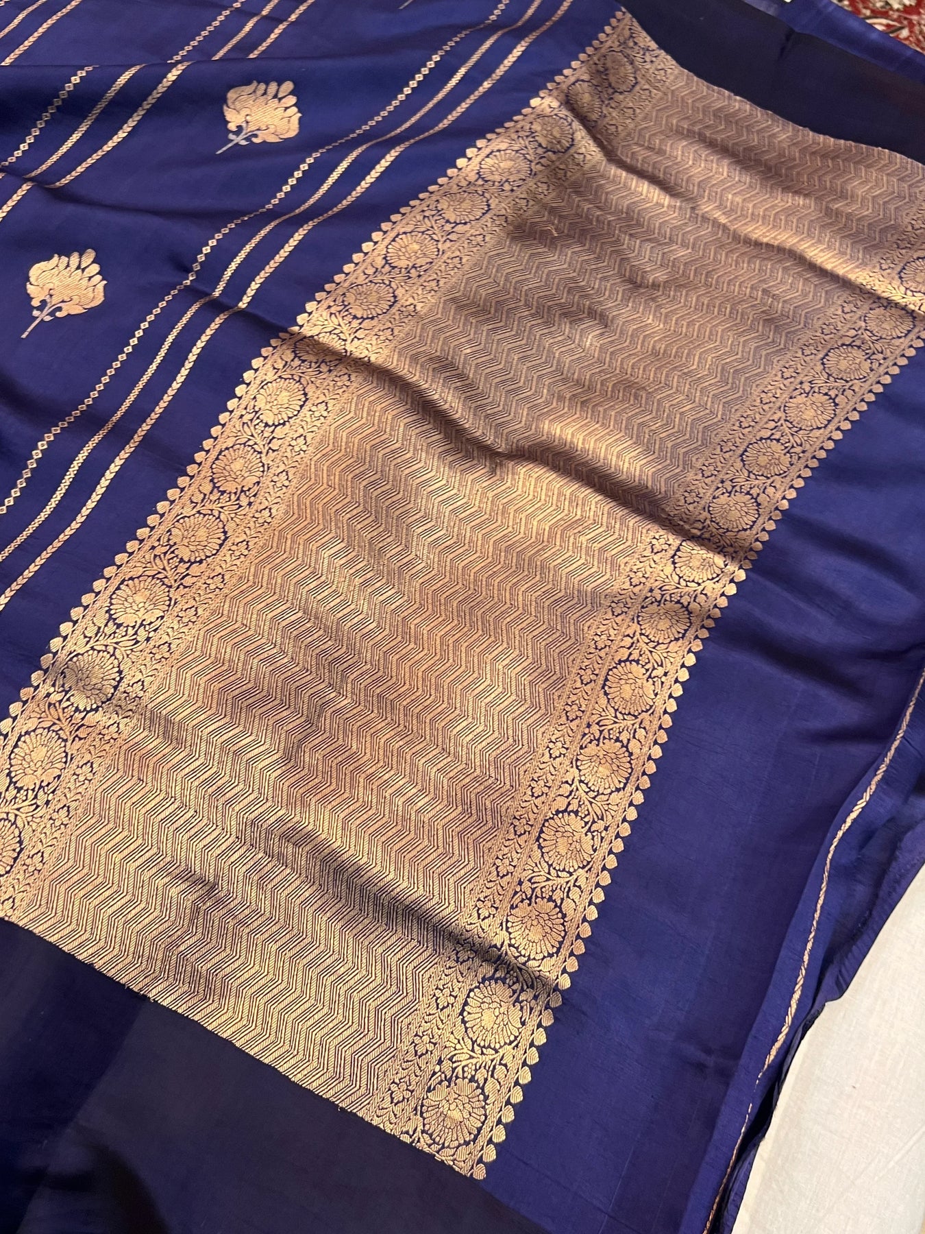 • Color - Navy Blue Banarasi saree .