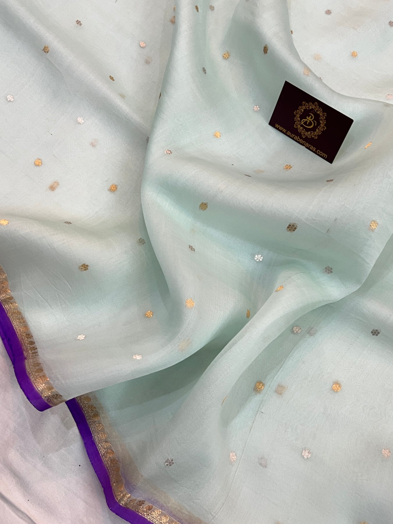 Sky Blue Pure Kora Silk Handloom Banarasi Saree