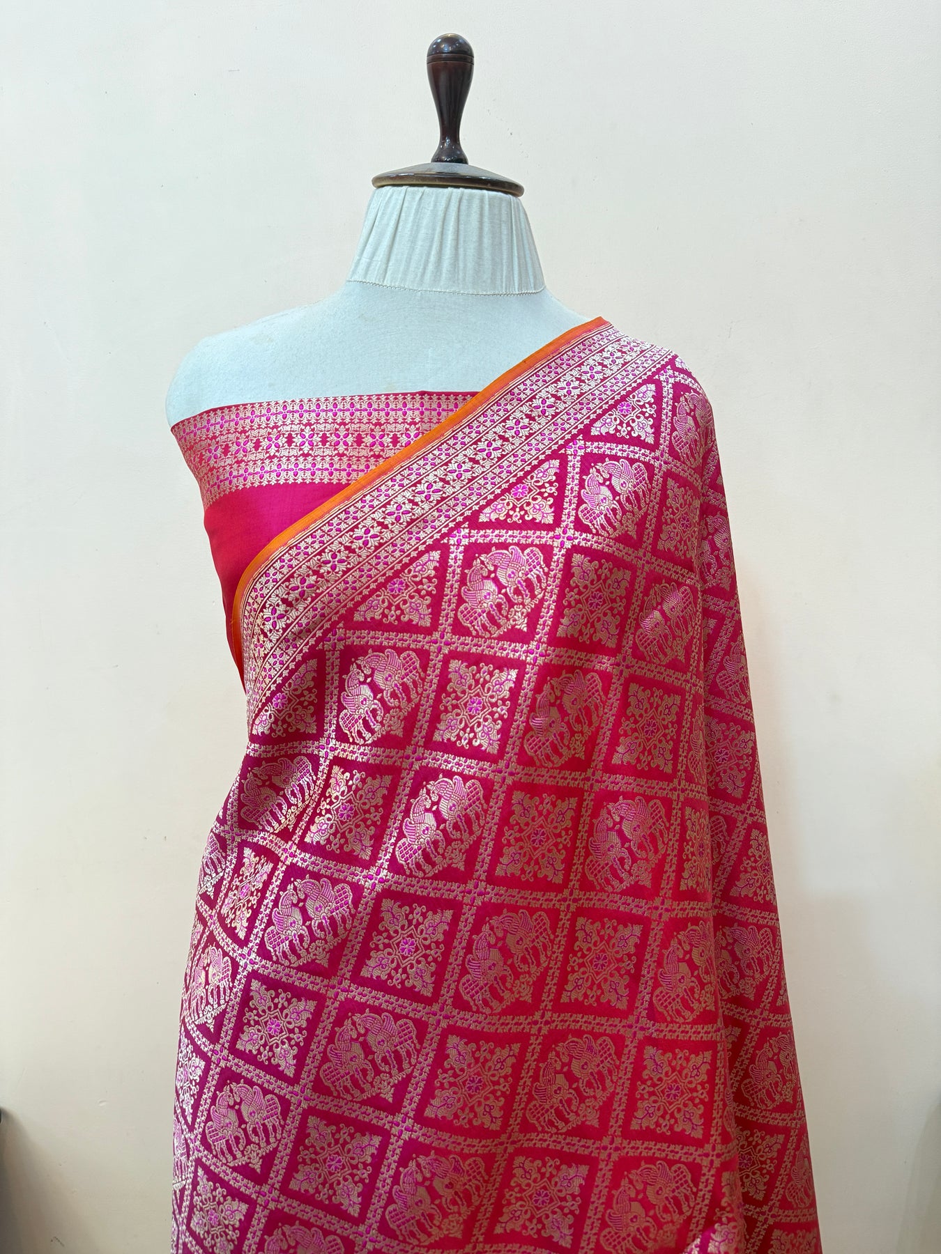 - Color - Rani Pink Banarasi saree.