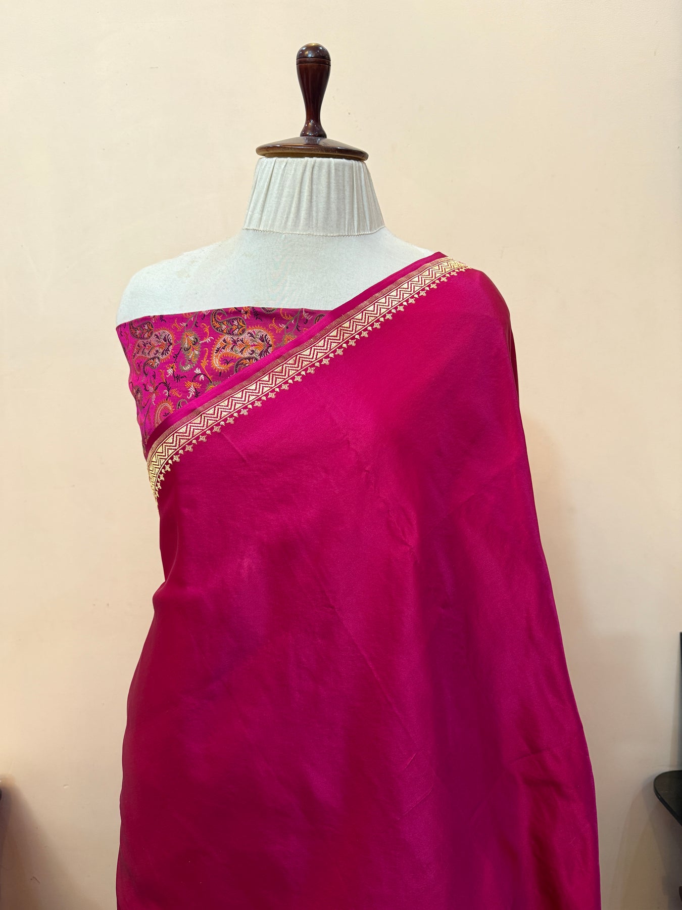Rani Pink Pure Banarasi Handloom Katan Satin Silk Saree