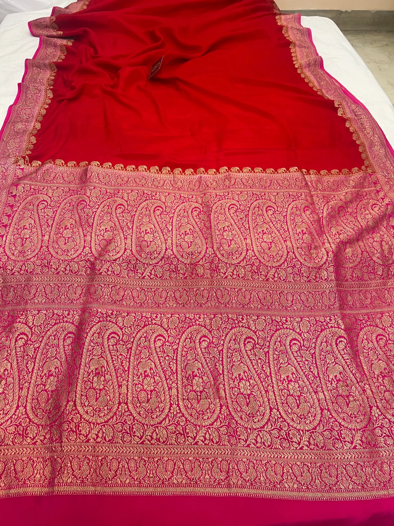 - Color - Red Banarasi saree with rani pink contrast.