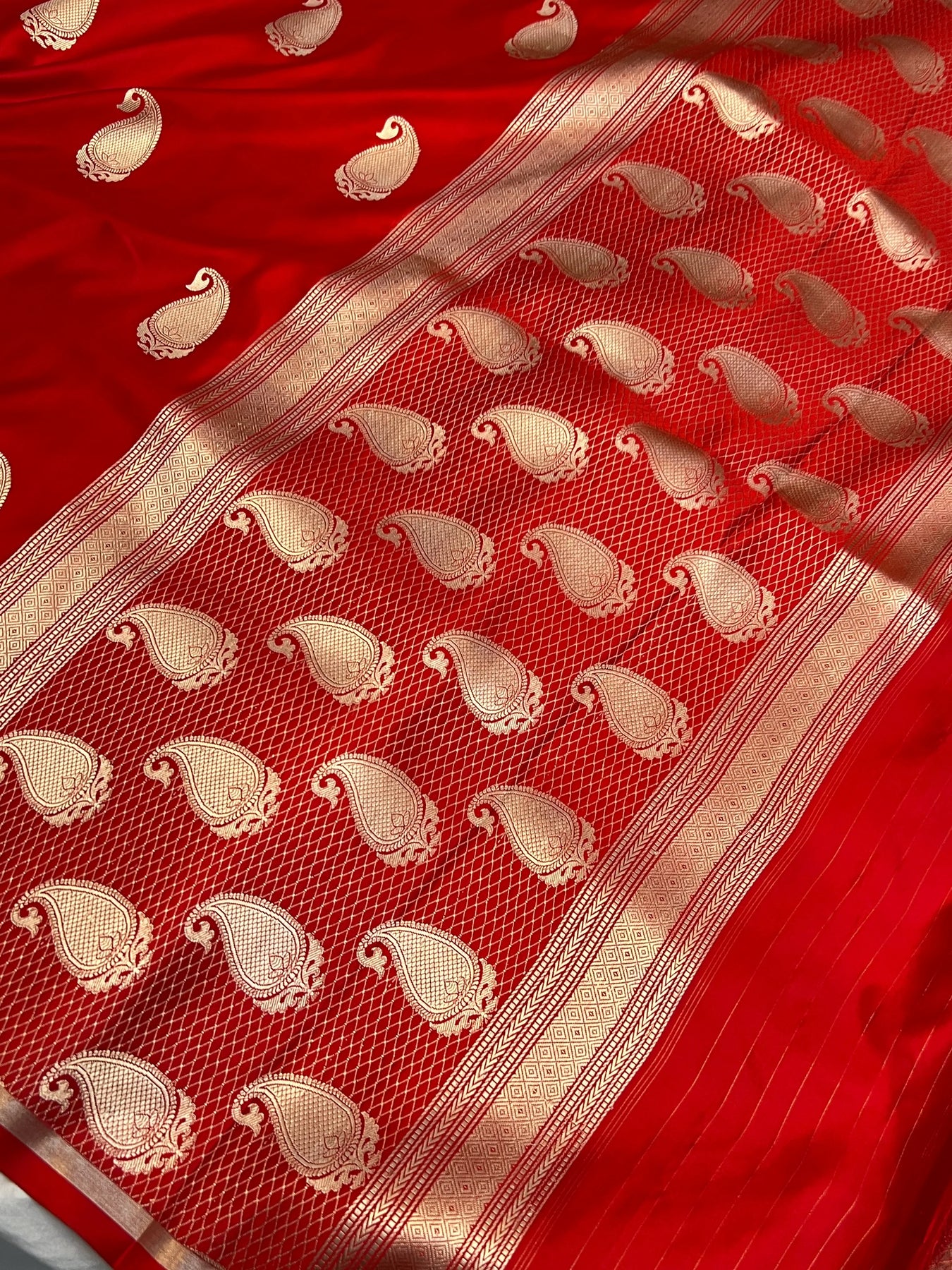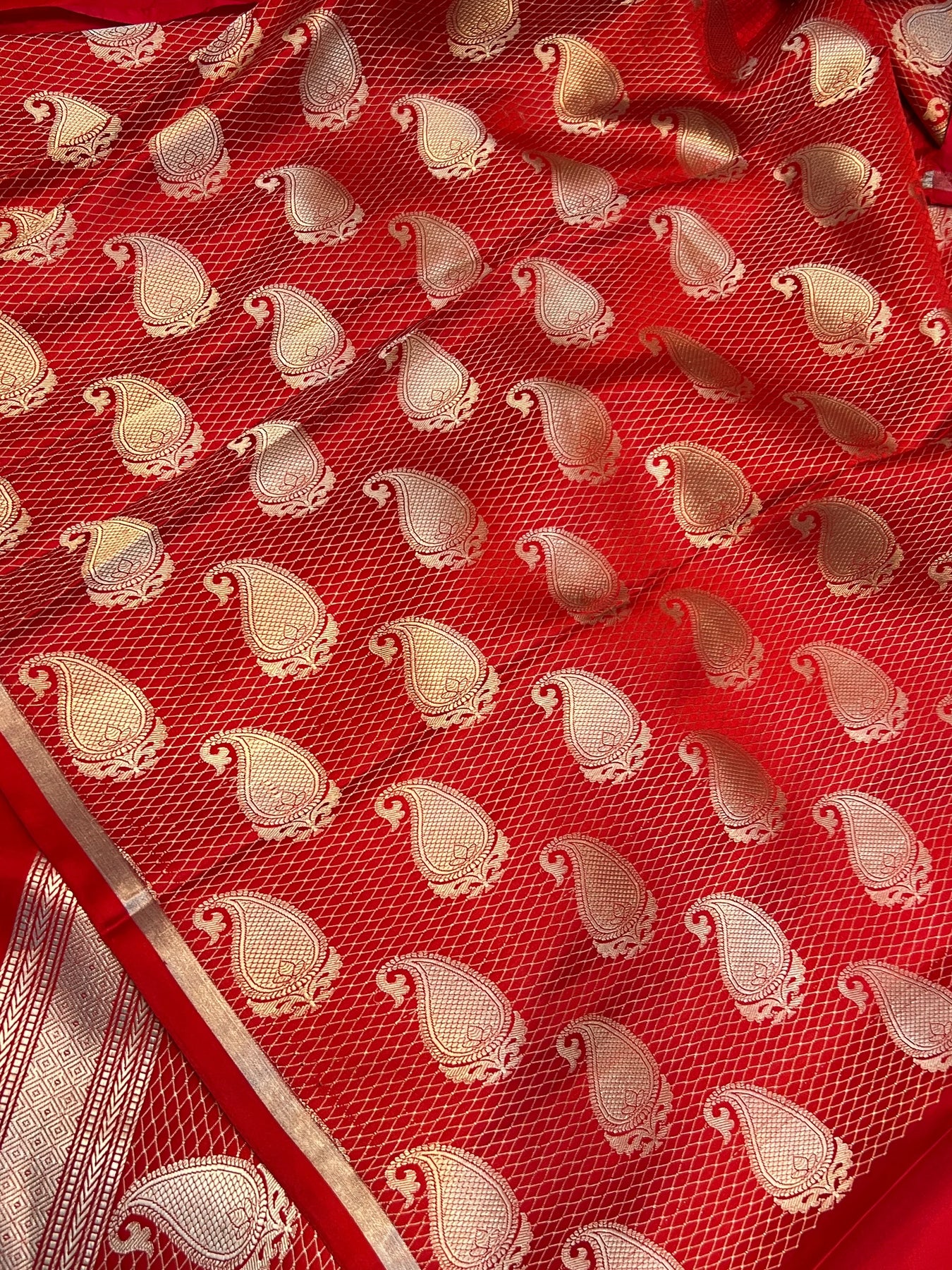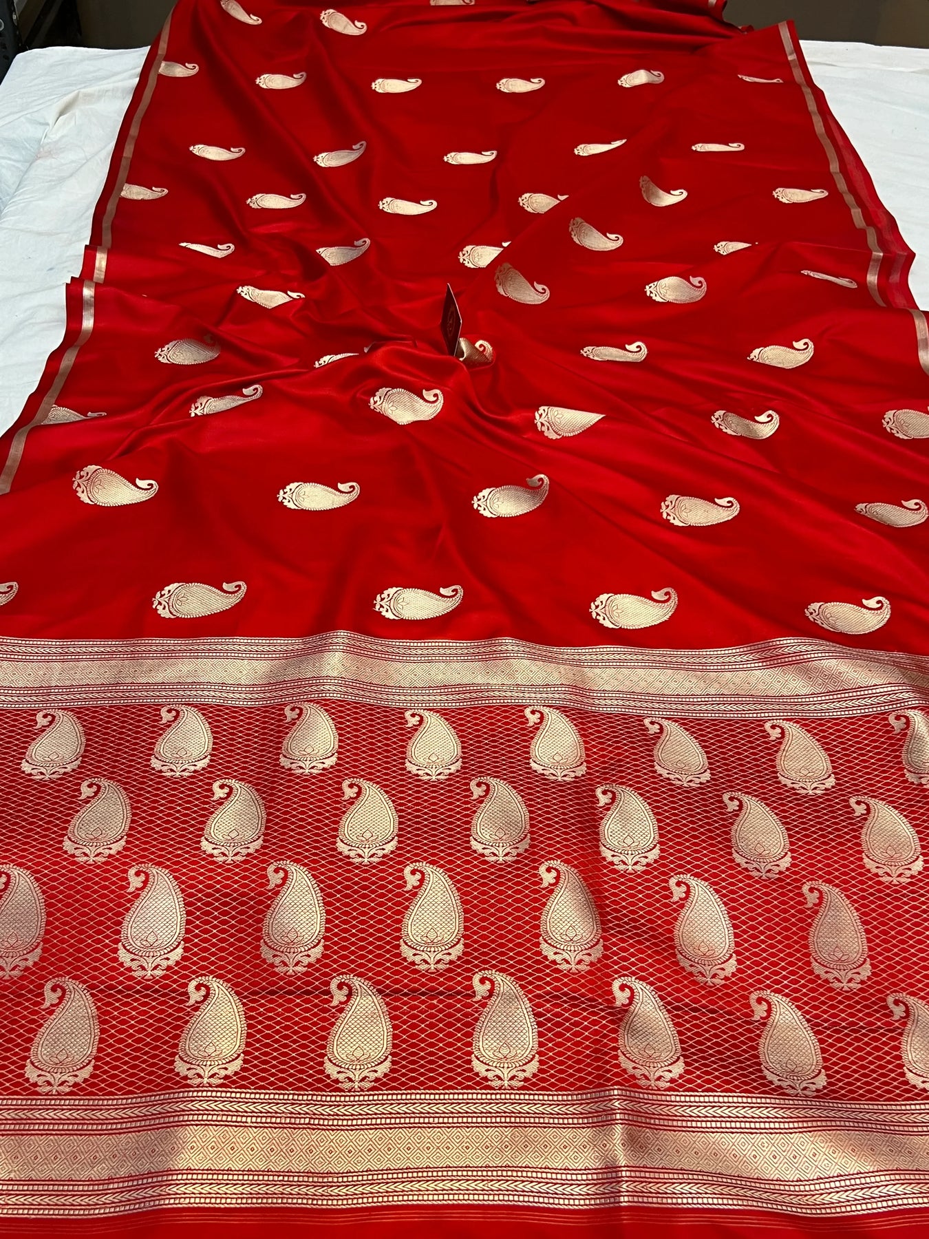 - Color - Red Banarasi saree.