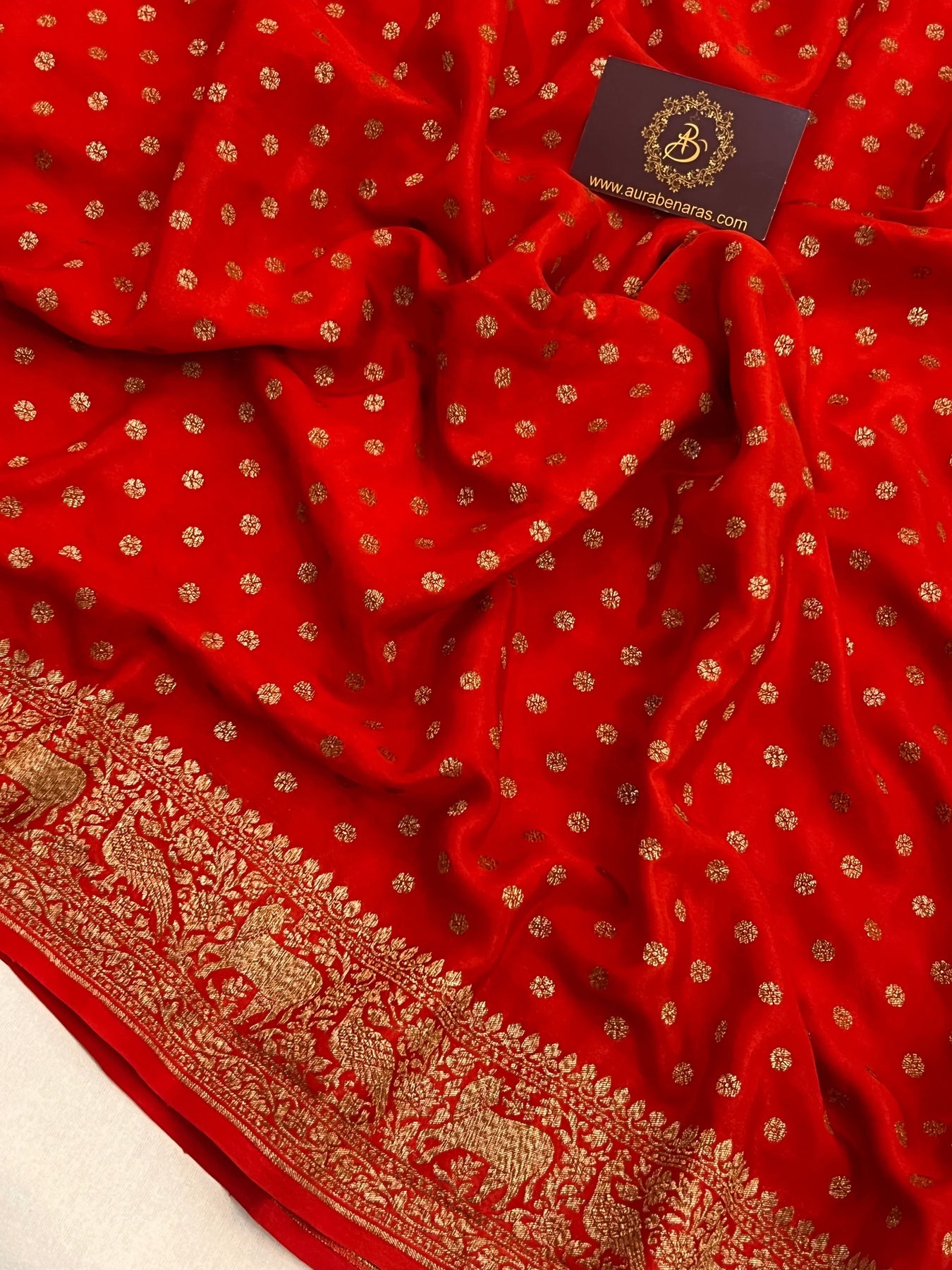 - Color - Red Banarasi saree.