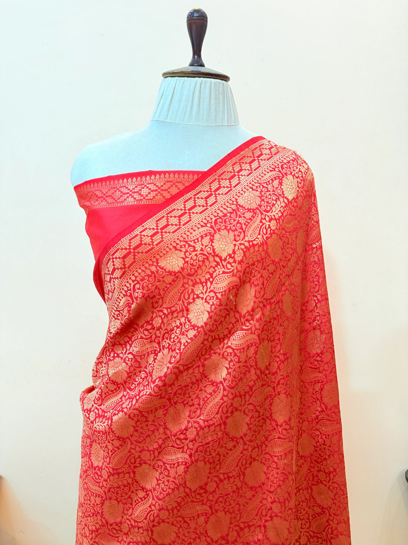 - Color - Red Banarasi saree.