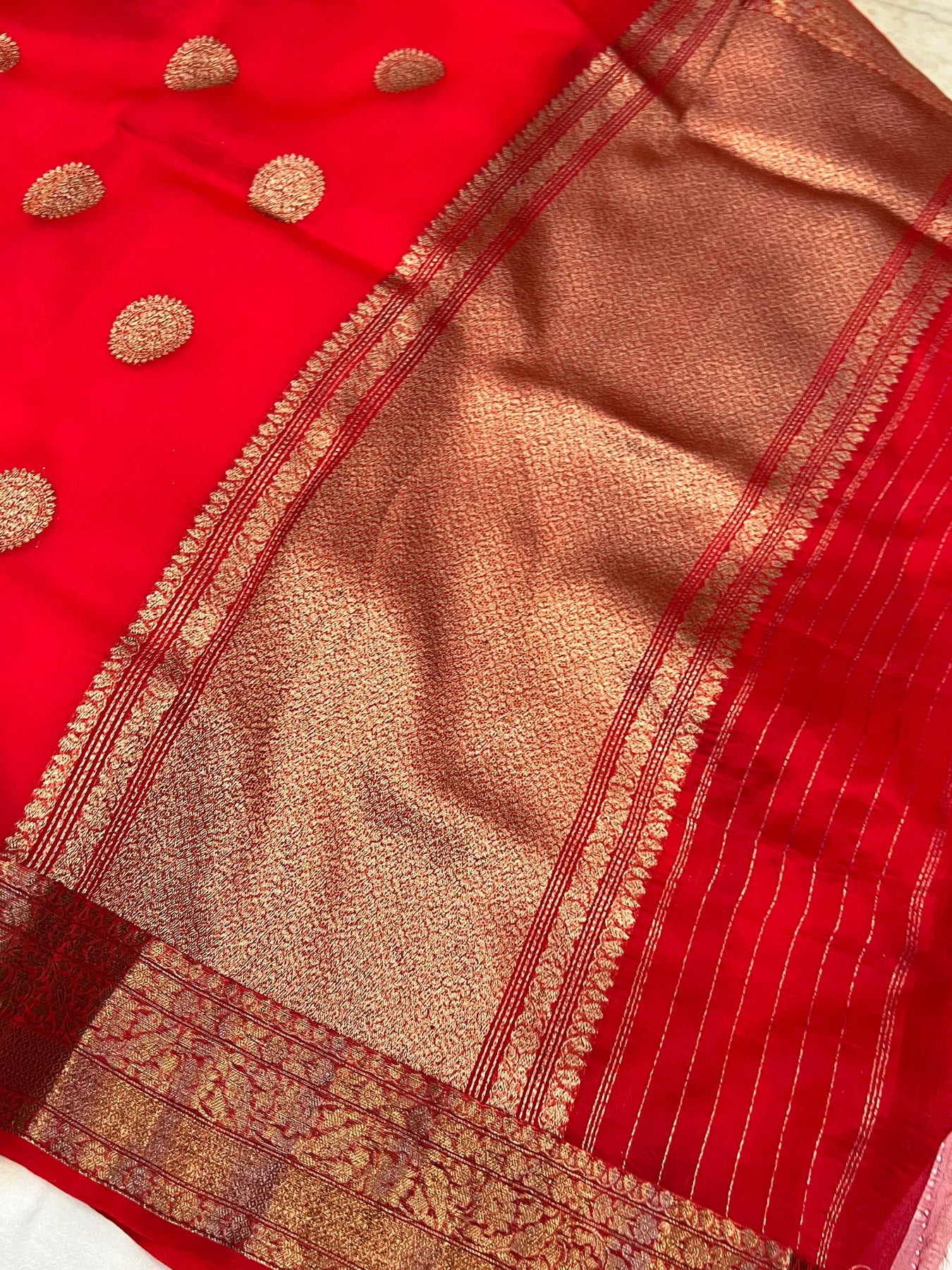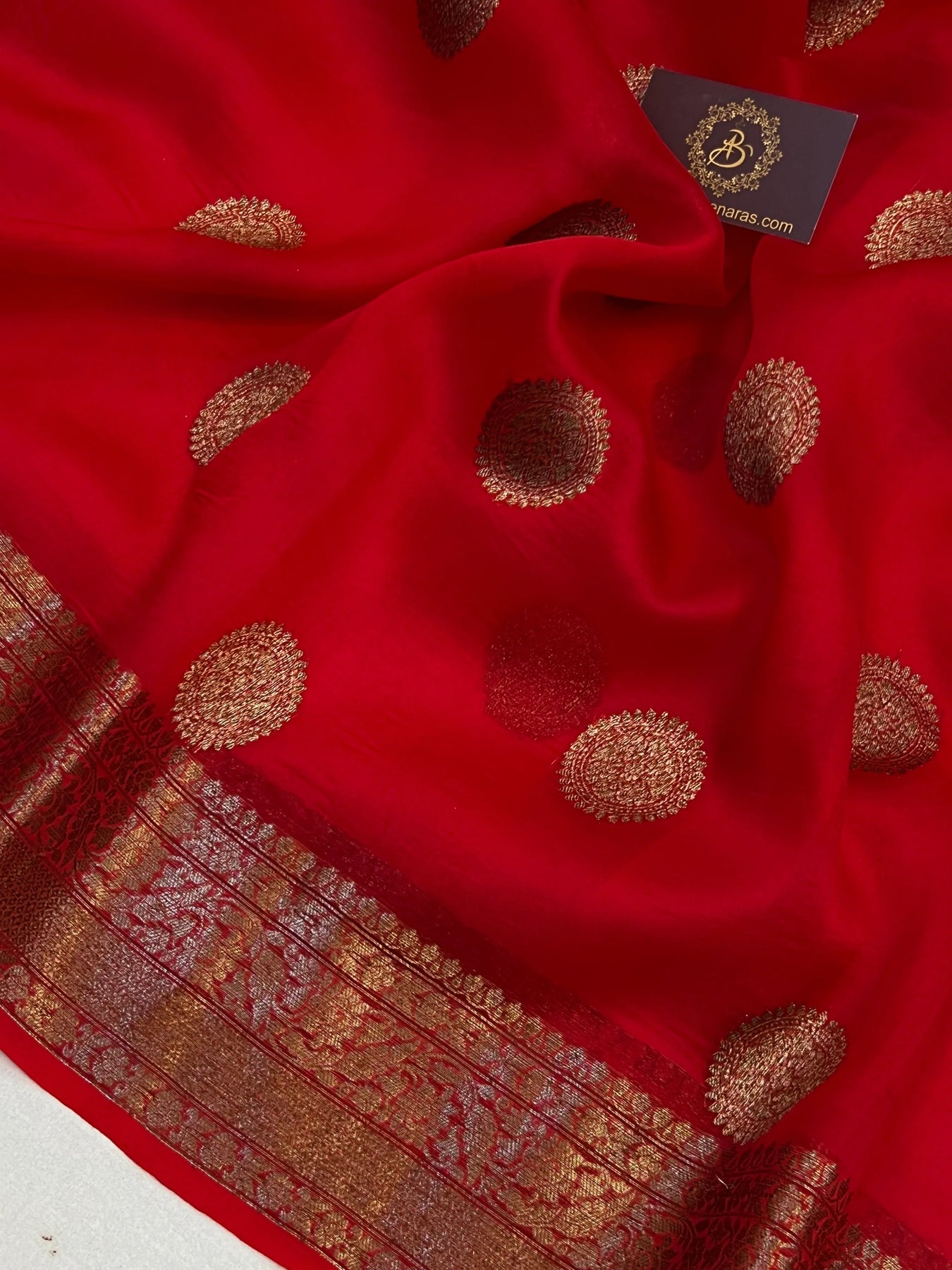 Red Pure Pure Kora Silk Handloom Banarasi Saree