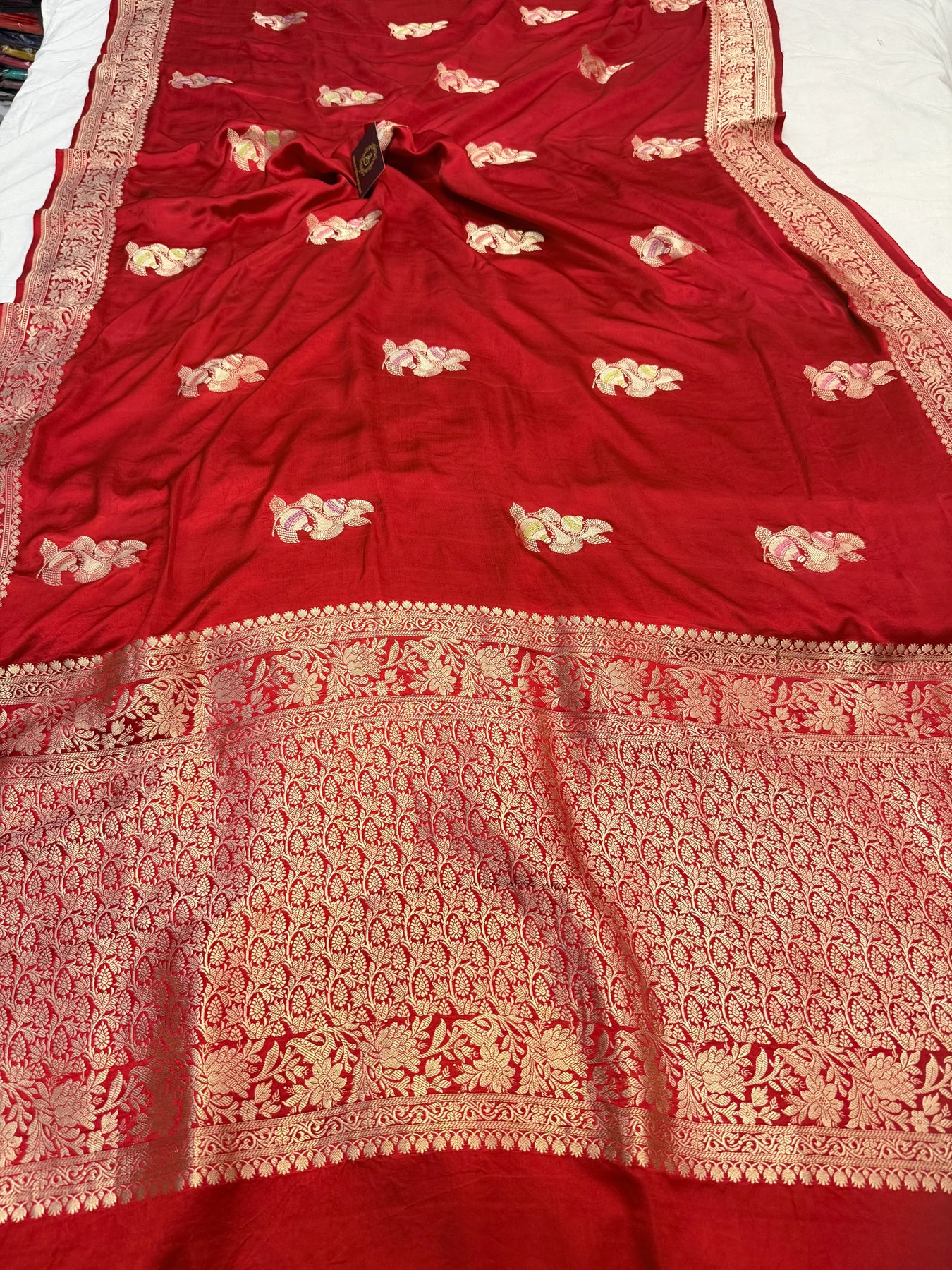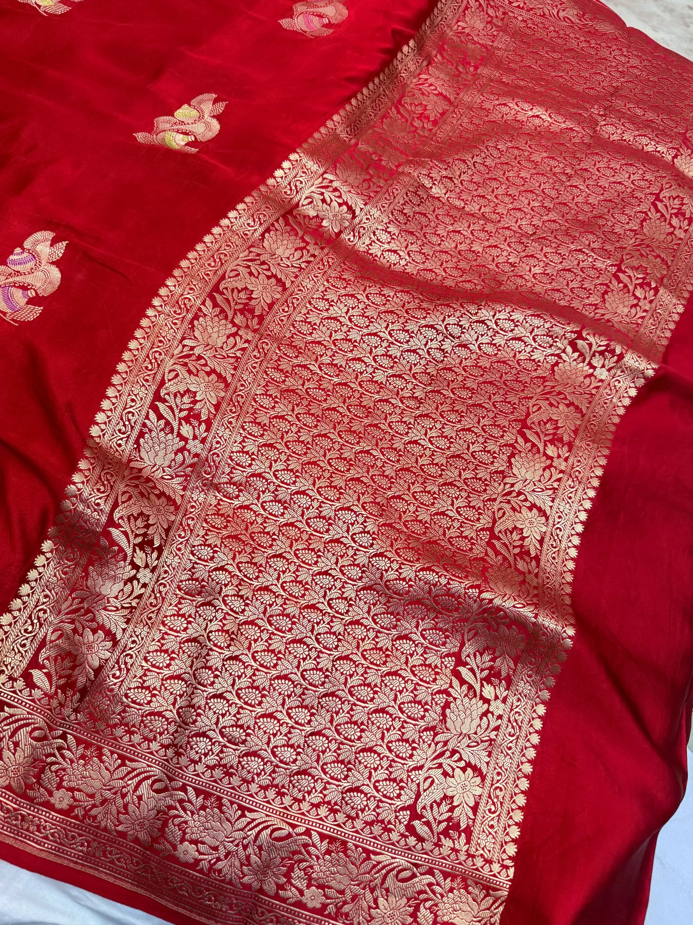 Red Pure Mashru Silk Handloom Banarasi Saree