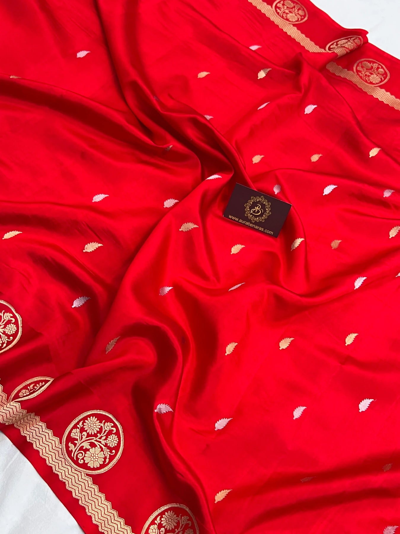Red Pure Silk Handloom Banarasi Saree – Kadwa Motifs