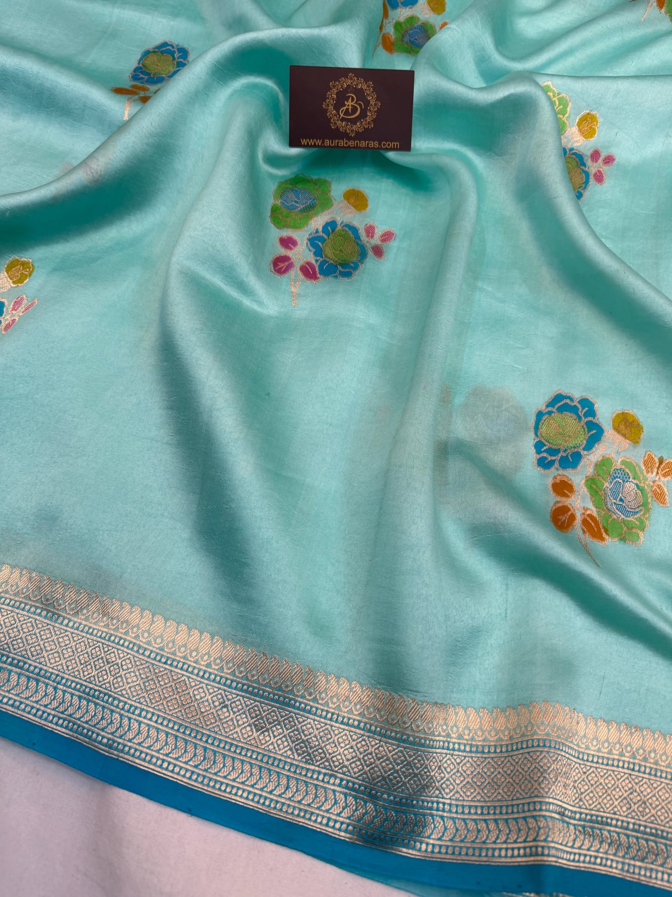 • Color - Sky Blue Banarasi saree with blue contrast.