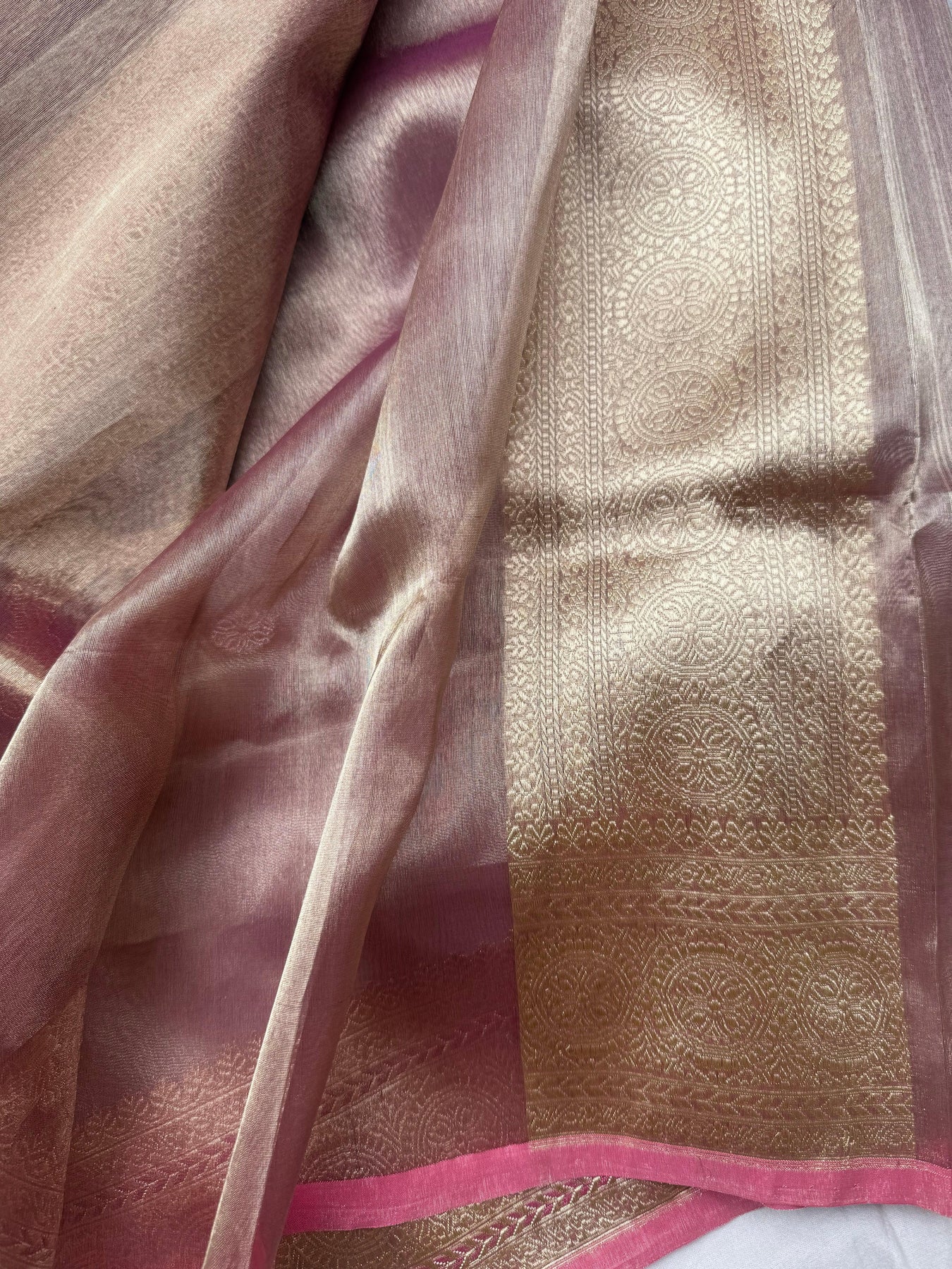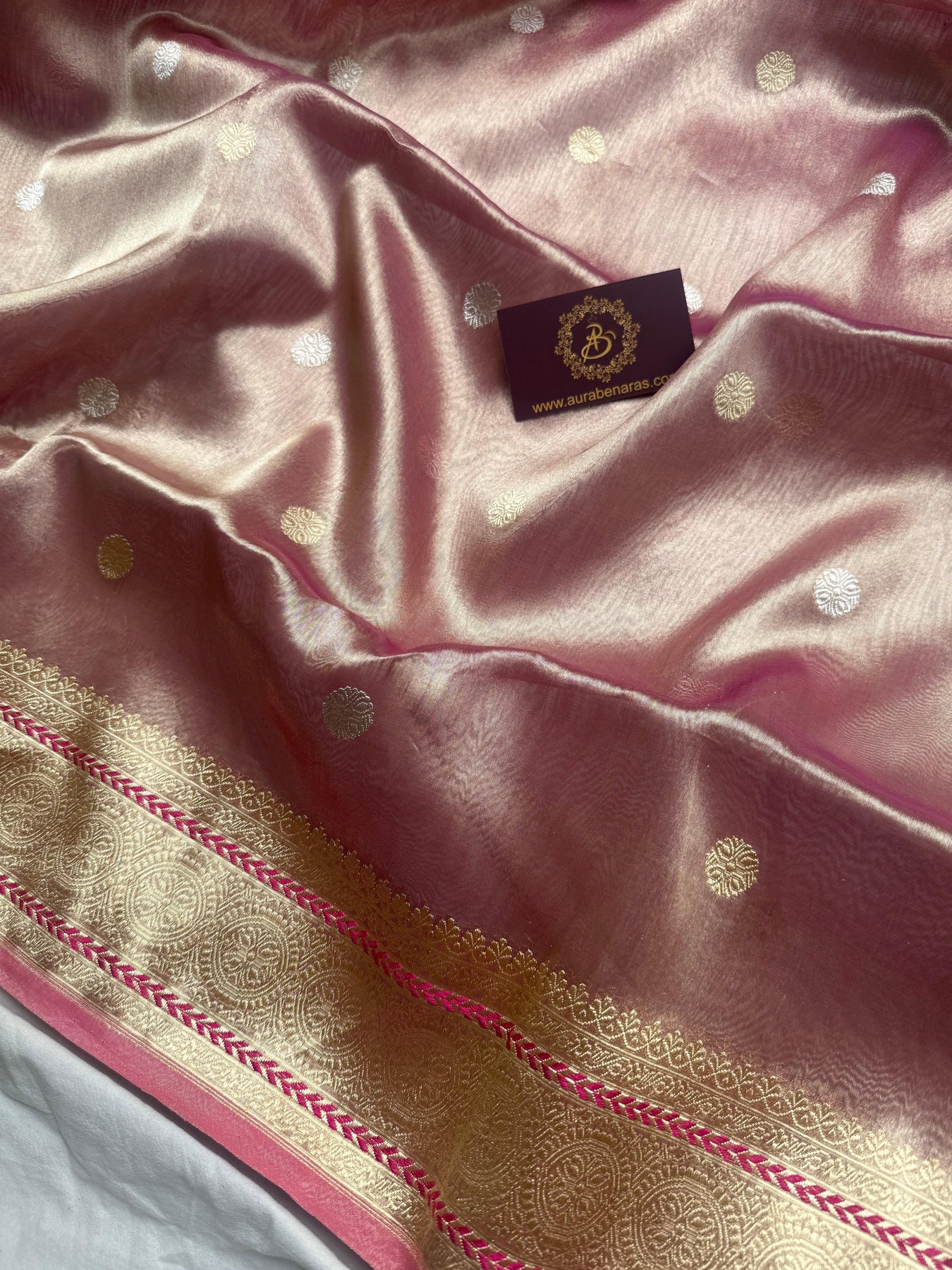 Pre Order :: Rose Pink Banarasi Handloom Tissue Silk Saree