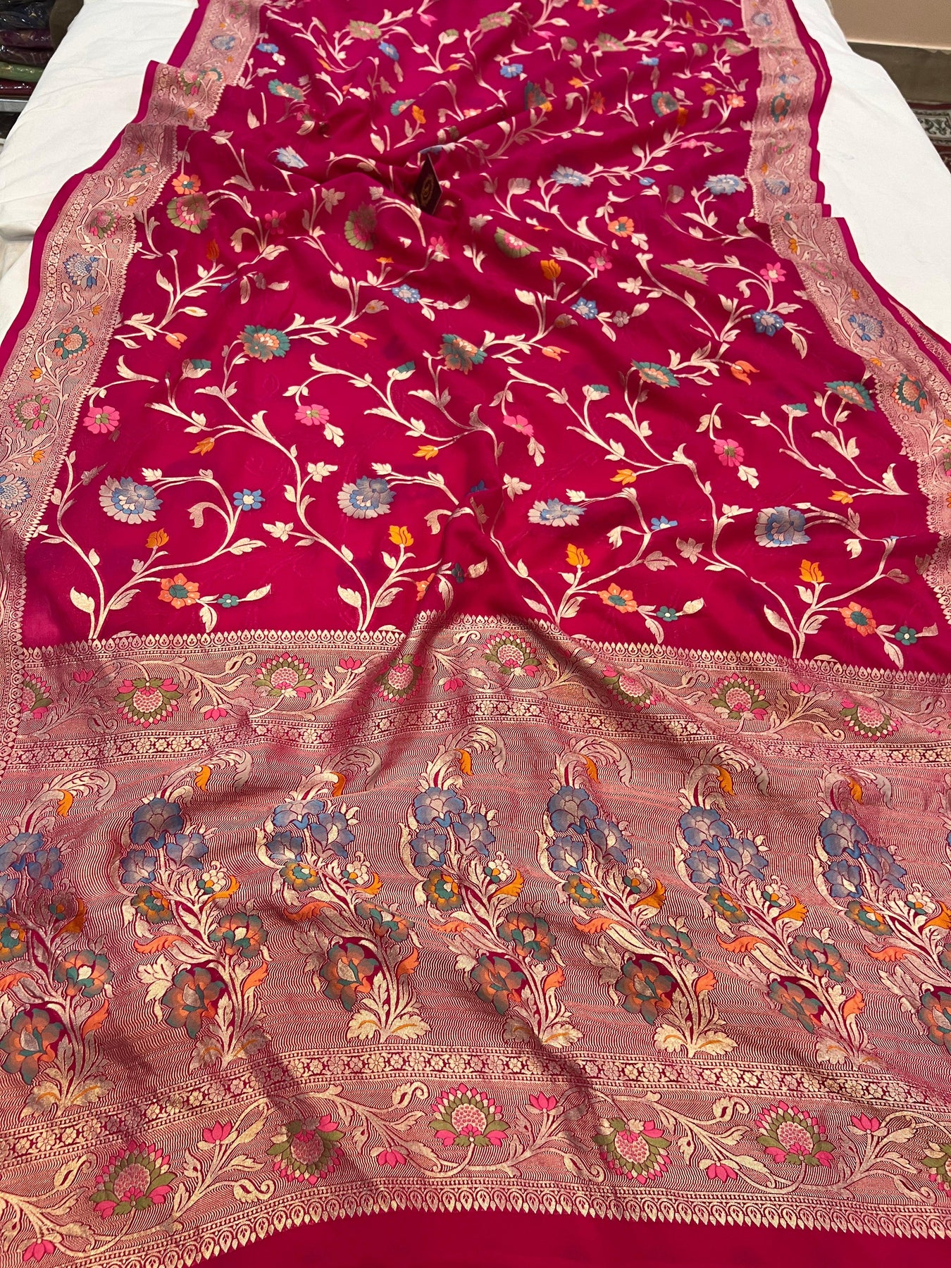 Rani Pink Pure Banarasi Khaddi Georgette Saree