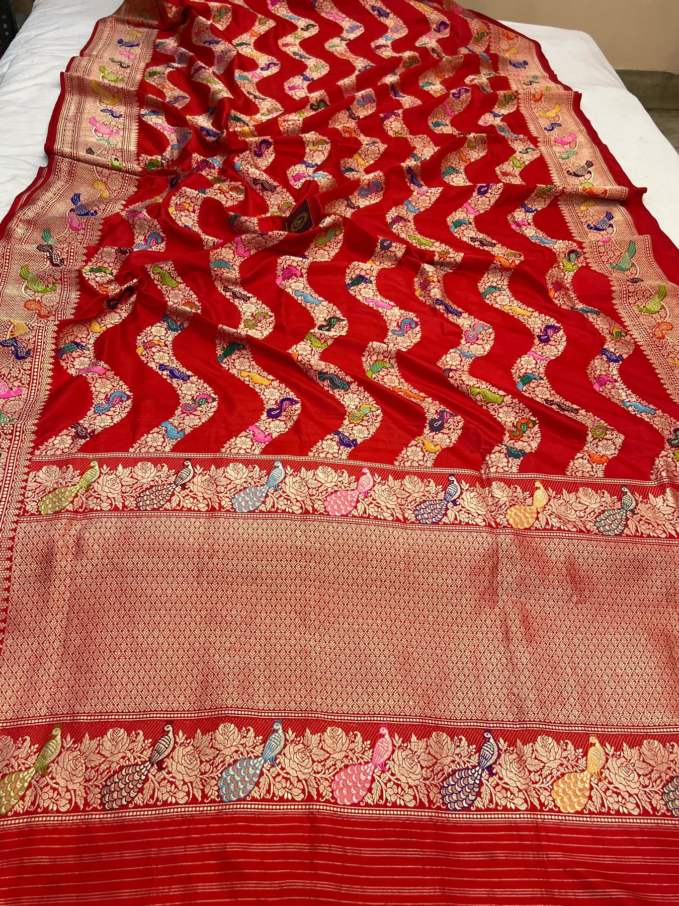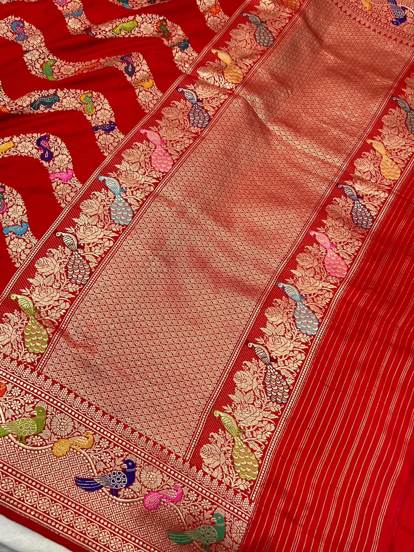Red Pure Katan Silk Banarasi Handloom Kadwa Meena Jangla Saree