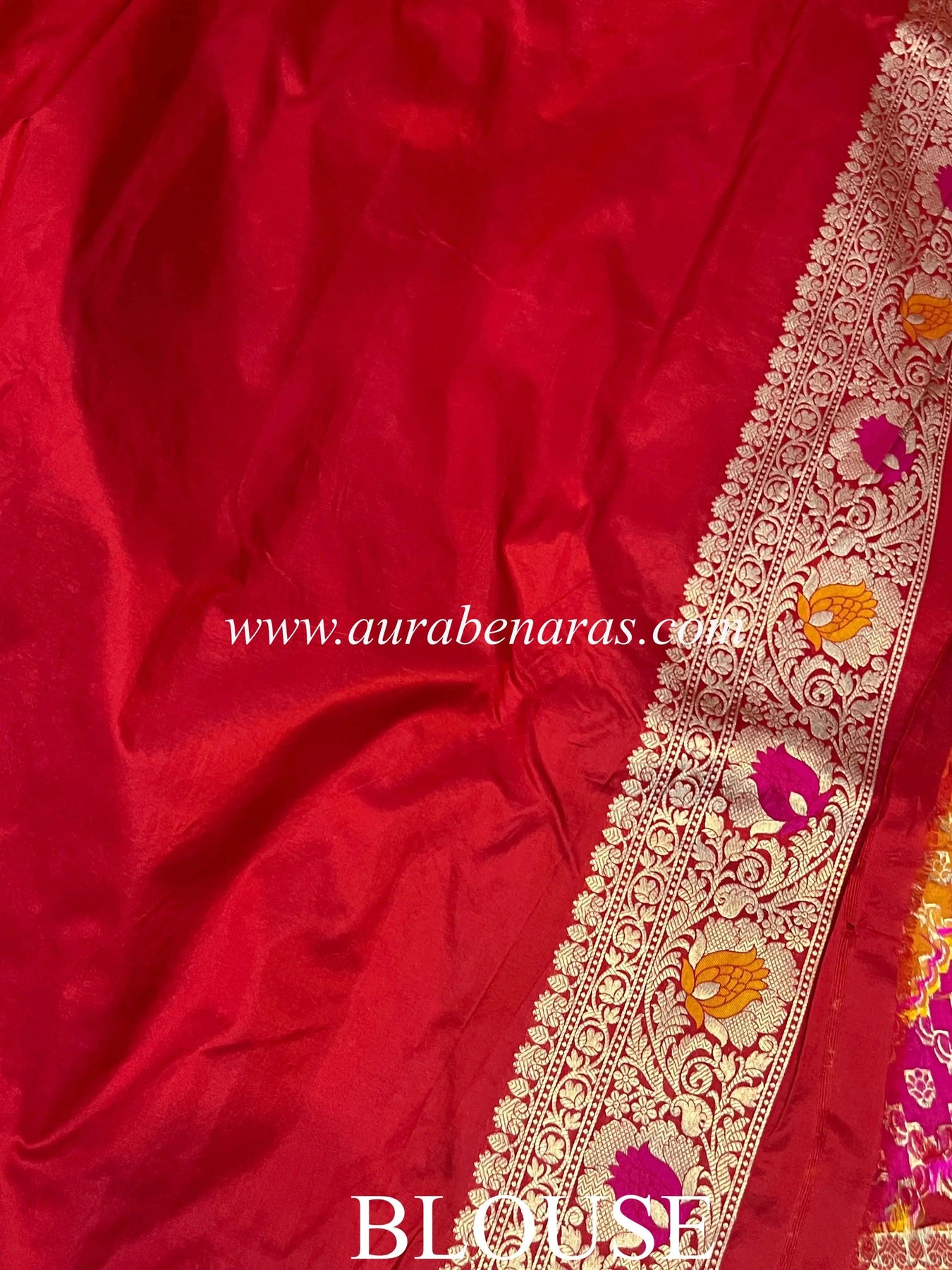 - Color - Bridal red Three-Tone Banarasi Rangkaat.