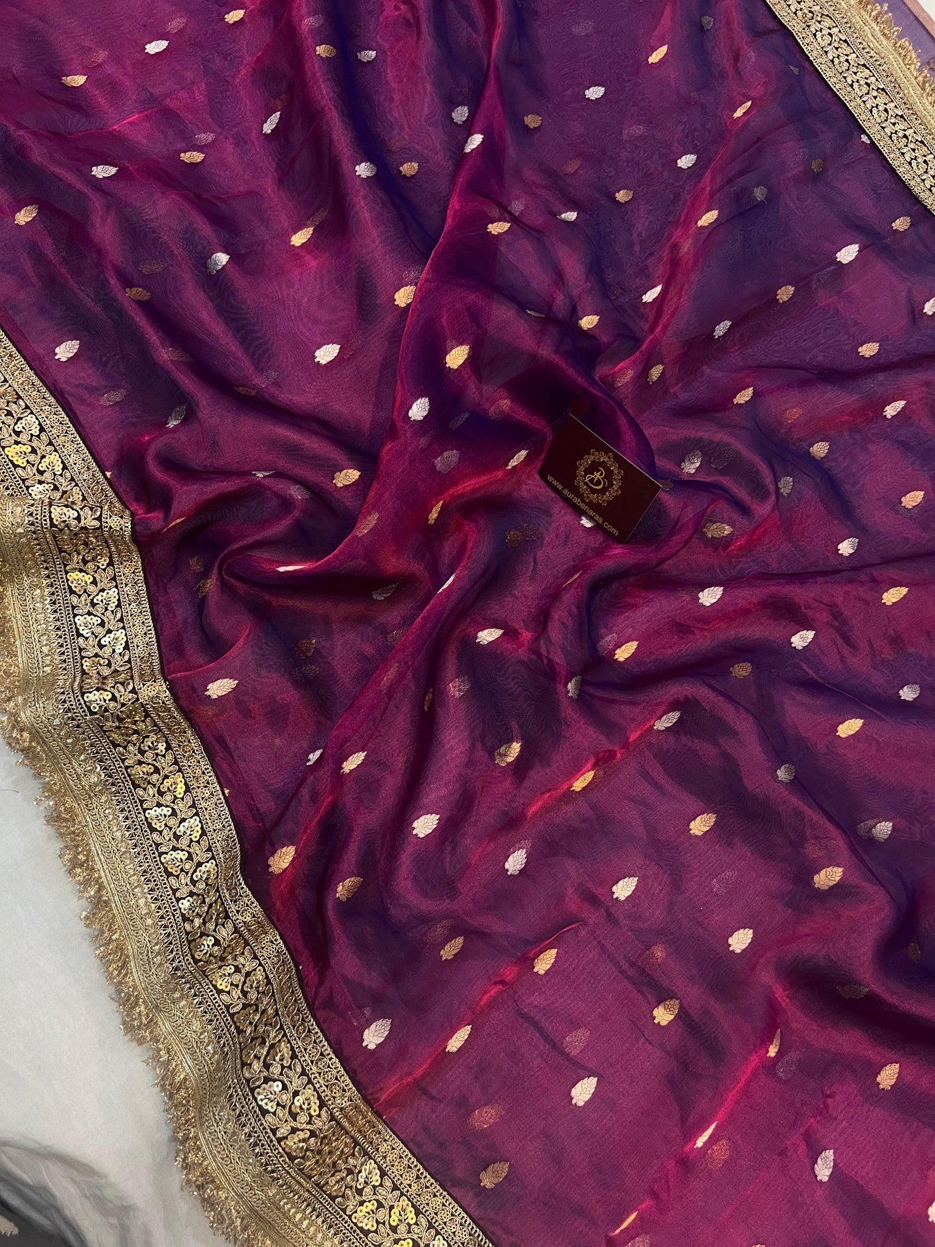 Wine Pure Banarasi Handloom Tissue Silk Saree