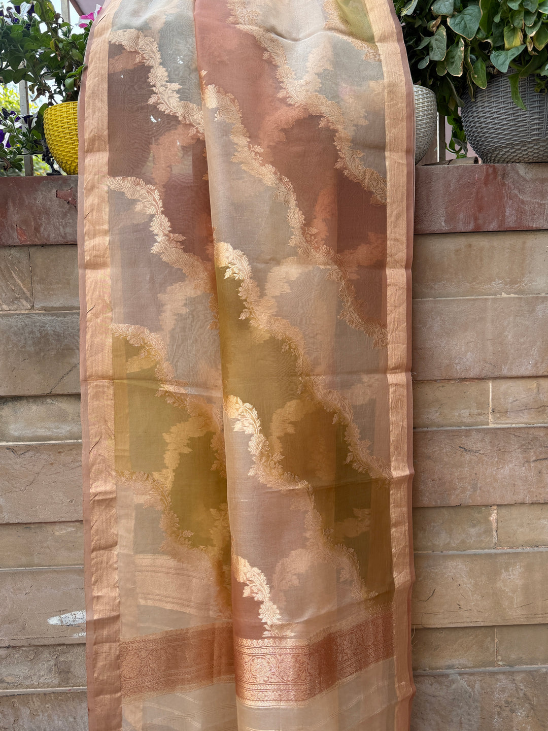 Beige Rangkaat Pure Banarasi Kora Silk Dupatta