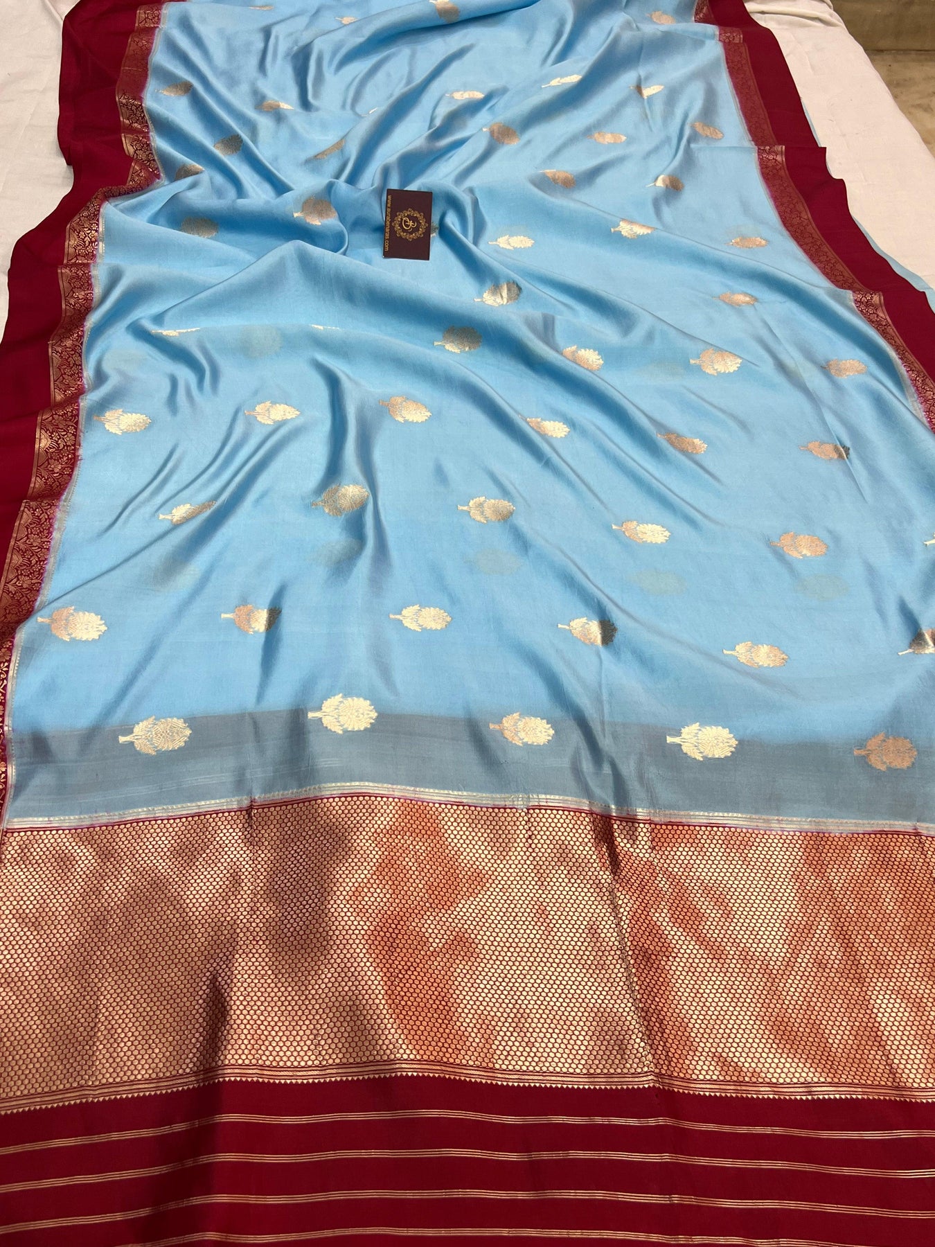 - Color - Blue Banarasi saree with maroon contrast.