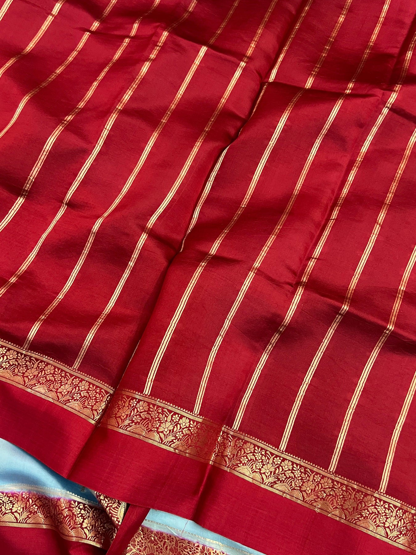 - Keep away from direct sunlight to maintain the color and zari shine.