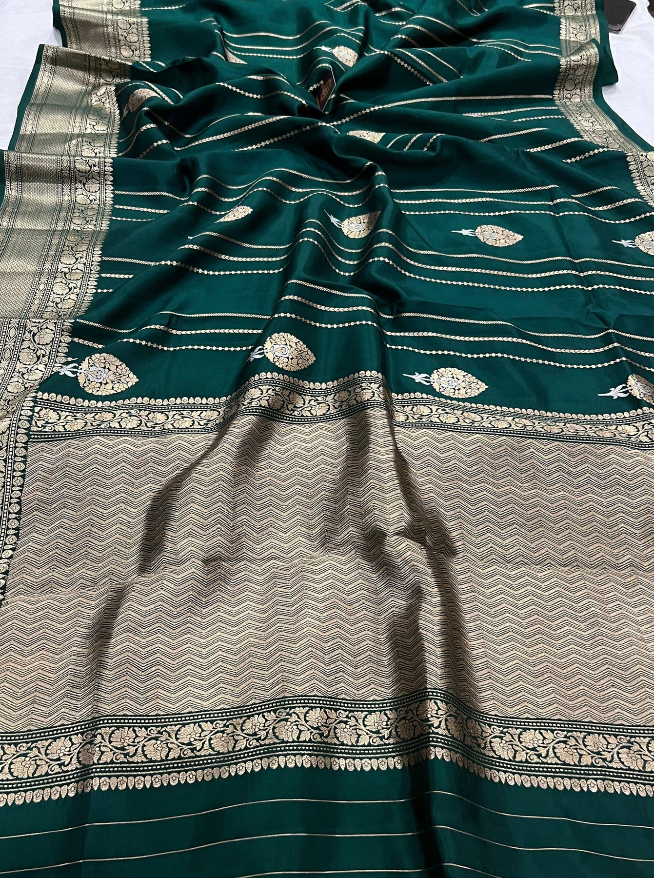 Bottle Green Pure Banarasi Handloom Silk Saree