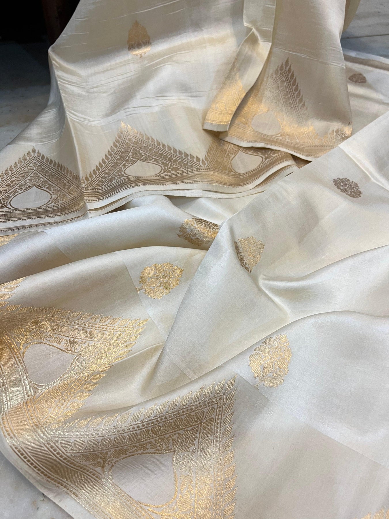 Cream Pure Banarasi Handloom Silk Saree