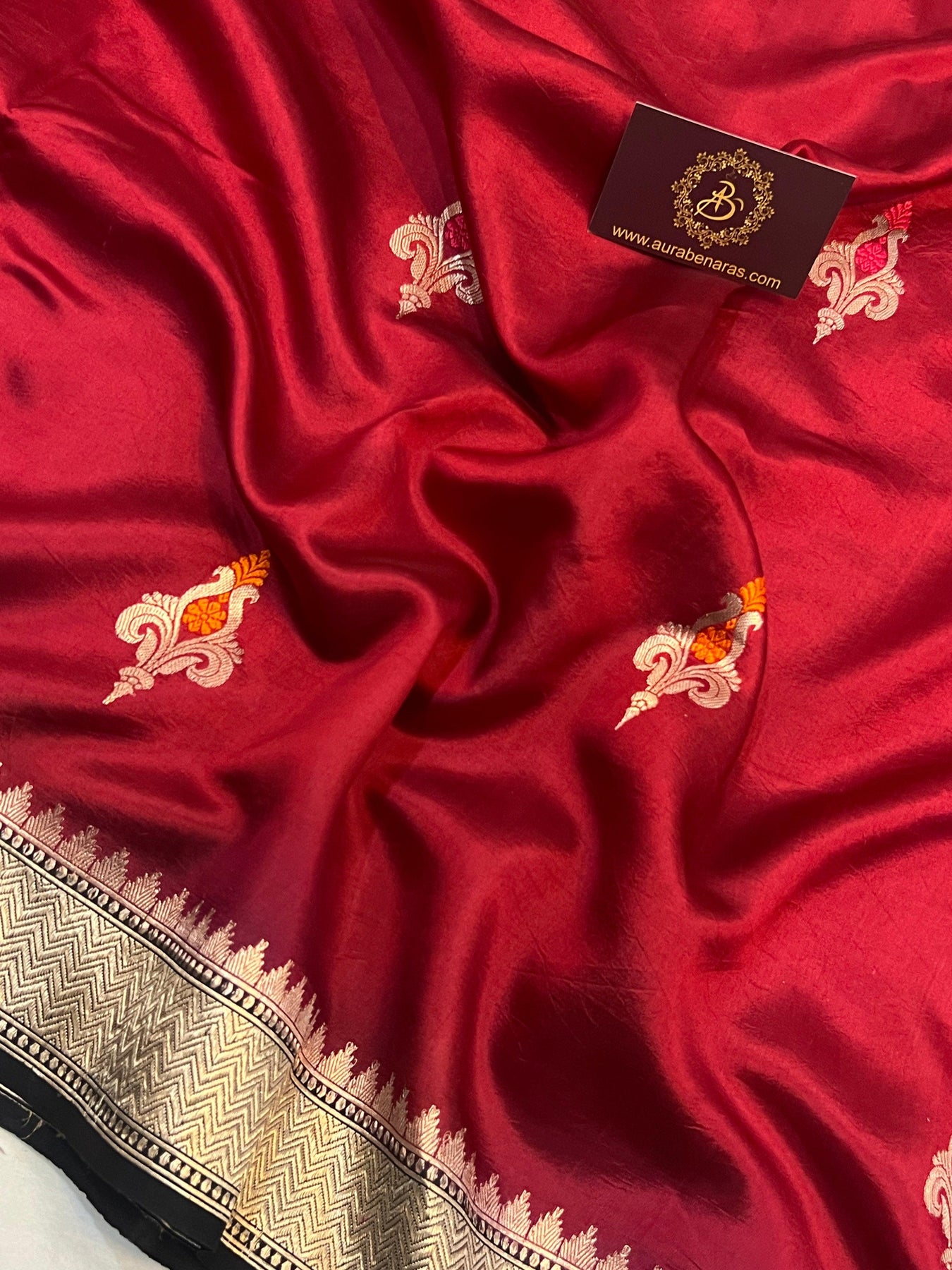 Maroon Pure Banarasi Handloom Silk Saree - Aura Benaras