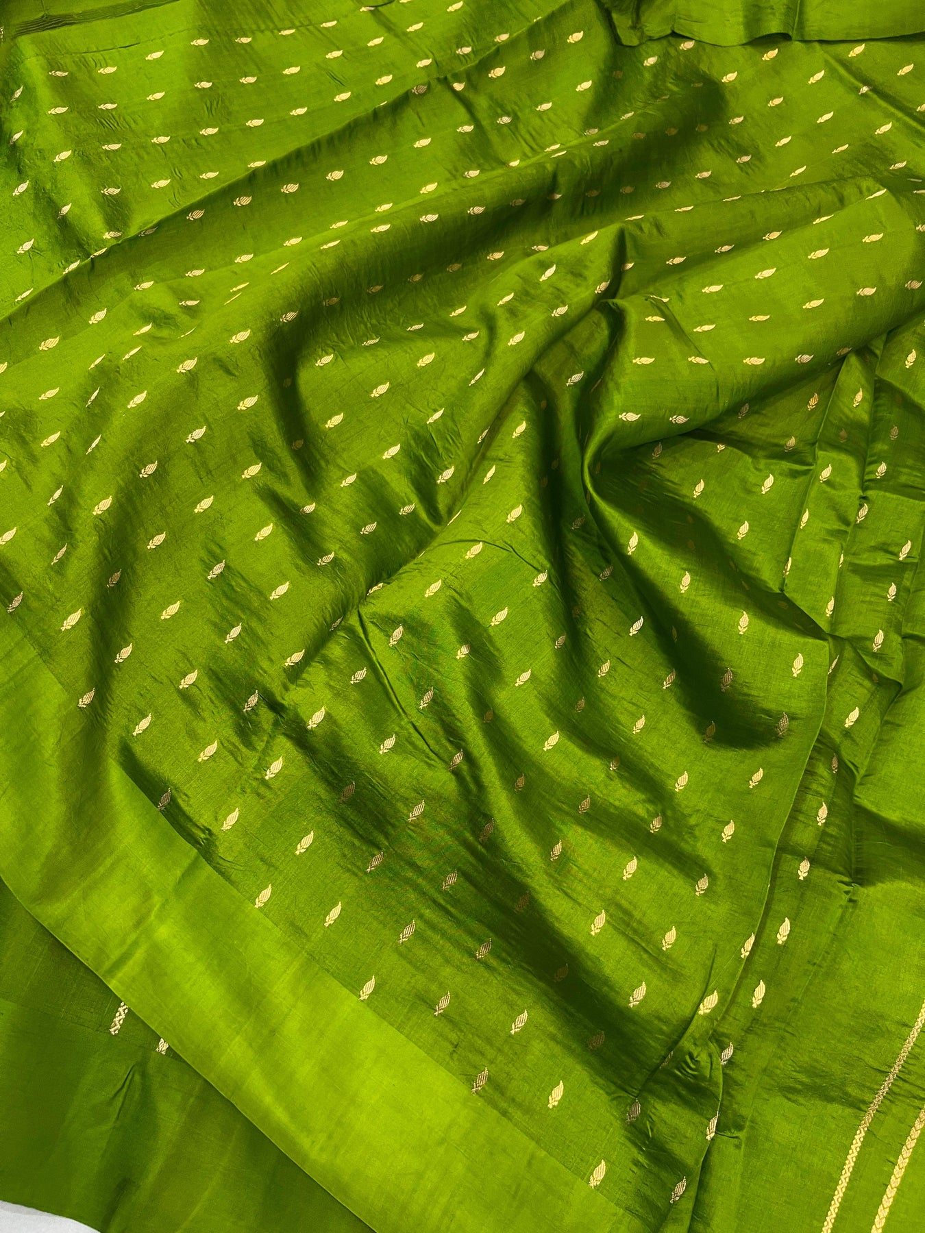 Mehendi Green Pure Banarasi Handloom Silk Saree