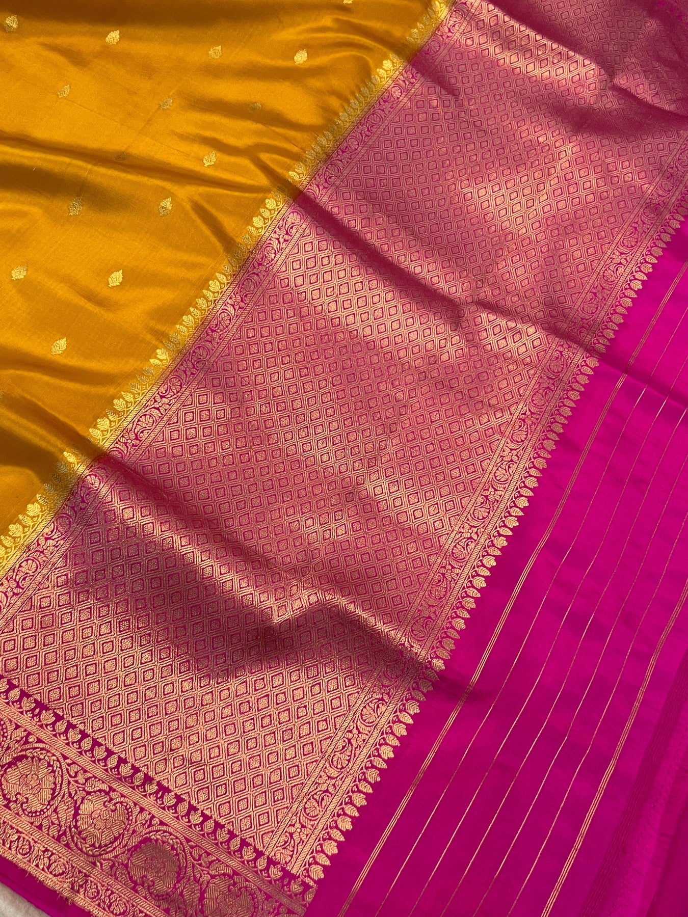 Mustard Yellow Pure Banarasi Handloom Silk Saree